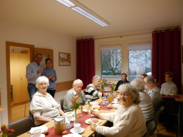 Mitglieder der Stadtteile Grünau, Großzschocher und Leutzsch verbrachten bei Sekt, Kaffee und Kuchen eine schöne Zeit miteinander und plauderten über Gott und die Welt.
