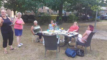 Der 9. Nachbarschaftsnachmittag in den Paunsdorfer Wohnhöfen fand am 12.08.20 im Innenhof der Begegnungsstätte des Jugend-und Altenhilfeverein e.V. in der Goldsternstraße 9 statt.