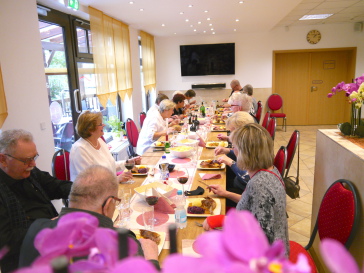 In gemütlicher Atmosphäre entstanden bei Kaffee und Kuchen schnell angeregte Gespräche zwischen den Seniorinnen und Senioren.