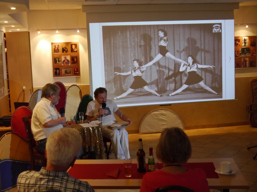 Ab 14.45 Uhr stimmte uns Michael Hollerbach musikalisch mit seiner Gitarre in die Veranstaltung ein, bevor Bernhard Stolle dann in einem Interview die gestellten Fragen beantwortete. Moderiert wurde das Gespräch vom Schauspieler und Clown Eberhard Eichner. Während der Veranstaltung wurden den Zuhörern Bilder von Anita Stolle gezeigt. Die Artistin ist im September 2018 leider schon von uns gegangen, aber ihr Leben wird uns in Erinnerung bleiben.