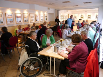 Im liebevoll dekorierten Veranstaltungsraum in Grünau erwartete die Gäste ein reich gedeckter Kaffeetisch mit Kaffee, köstlichen Torten und kleinen Leckereien. In entspannter Atmosphäre kamen die Gäste schnell ins Gespräch, tauschten Erinnerungen aus und genossen das gesellige Beisammensein.