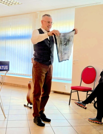 Während die Besucherinnen und Besucher bei Kaffee und Kuchen an liebevoll gedeckten Tischen Platz nahmen, verwandelte sich der Raum nach und nach in eine kleine Zauberbühne. Mit Charme, Witz und viel Nähe zum Publikum führte Donatus durch sein Programm. Dabei blieb kaum jemand unbeteiligt: Immer wieder bezog der Künstler Gäste in seine Tricks ein, reichte Karten oder Tücher weiter und sorgte mit überraschenden Effekten für verblüffte Gesichter.