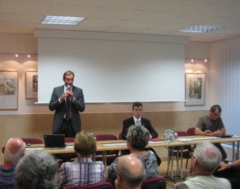 wurde vom Vorsitzenden des Bürgervereins Paunsdorf e.V. Herrn Henning Striegan eröffnet und moderiert. Frau Carmen Seidel, Planungsleiterin des Amtes für Stadtgrün- und Gewässer, unterstützt von Frau Uta Walter, stellte anschaulich die Etappen der Entwicklung des „Grünen Bogen“, begonnen 1999 bis zum heutigen Stand dar. Es wurde Zwischenbilanz gezogen zu den damaligen Zielstellungen und den heutigen Ergebnissen. Ein weiterer Themen- schwerpunkt war die Konzeption des künftigen Bauabschnittes „Übergang zur alten Ortslage“ mit voraussichtlichem Baubeginn 2015. Das Büro für Landschaftsarchitektur Häfner / Jimenez, vertreten durch Herrn Jens Betcke, hat dieses Projekt entwickelt und über den gesamten Zeitraum betreut. Die Teilnehmer folgten konzentriert den Ausführungen und brachten sich mit Fragen und Vorschlägen in die gelungene Veranstaltung ein. Im Ergebnis der Veranstaltung wurden Ideen und Hinweise für die Planfortschreibung des Grünen Bogens zusammengetragen und es wird geprüft, wie sie bei der weiteren Umsetzung Berücksichtigung finden können. Weitere Fotos sehen Sie in unserer "Galerie".