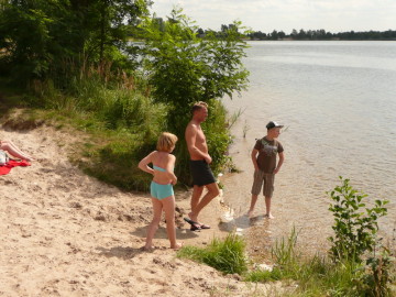 Bei strahlendem Sonnenschein und Temperaturen bis knapp 30 Grad zog es die große Mehrheit ins „kühle Nass“ am Bergwitzsee, wo ein breiter Sandstrand zum spielen, baden und relaxen einlud. Unweit vom Wasser entfernt, erkundeten die Kinder bei dem Besuch des Naturlehrgarten und Waldhauses in Bergwitz die Natur mit allen Sinnen und informierten sich in einer kleinen Ausstellung über Flora und Fauna der Dübener Heide.