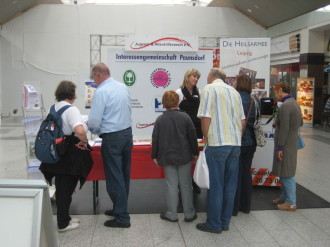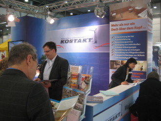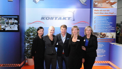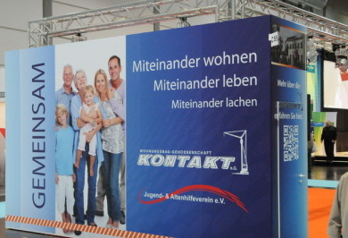 Auch die Wohnungsbau-Genossenschaft Kontakt e.G. beschäftigt sich im Hinblick auf die Entwicklung des demographischen Wandels und der Tatsache, dass in ihrer Genossenschaft mittlerweile rund 6.000 Menschen leben - die 70 Jahre und älter sind - immer stärker mit der bedarfsgerechten Gestaltung der Wohnbestände sowie dem Ausbau der Sozialberatung und Unterstützung ihrer Mitglieder. Die WBG Kontakt e.G. informierte Besucher und Interessenten nicht nur über die Möglichkeiten von seniorenfreundlichen Wohnraumanpassungen (z.B. Beseitigung von Schwellen, Verbreiterungen von Türen, Versetzung von Fenster- und Balkontürgriffen, Installation von altersgerechten Sanitäranlagen) sondern auch über ihr umfassendes Angebot an sozialen Dienstleistungen (z.B. Unterstützung bei der Haushaltsführung, Übernahme von individuellen Besorgungen, Hilfe bei Behördengängen). Am Gemeinschaftsstand mit der WBG Kontakt e.G. stellte auch der Jugend- & Altenhilfeverein seine vielfältigen Informations-, Kultur- und Sportangebote vor, welche