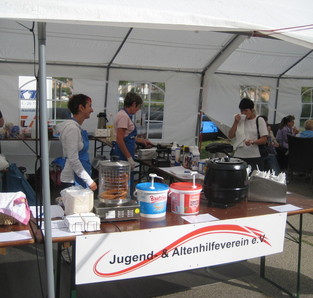 Auch in diesem Jahr beteiligte sich der Jugend- und Altenhilfeverein e.V. am Paunsdorfer Stadtteilfest auf dem Parkplatz der Heiterblickallee 2-6. Trotz teils stürmischen und regnerischen Wetters, ließen es sich die Paunsdorfer, Freunde und Gäste auch in diesem Jahr nicht nehmen und feierten Freitag & Samstag (13.07.- 14.07.2012) gemäß dem diesjährigen Thema „25 Jahre Paunsdorf“. Der Jugend- & Altenhilfeverein empfing dabei alle Besucher recht herzlich in seinem Vereins-Imbiss, wo es neben einer leckeren Wurstsuppe, Wienern, Brot mit Schmalz und Gurken auch Kaffee und hausgemachte Waffeln gab. Für die kleineren Gäste bot der Verein wieder einige Kreativangebote, wie beispielsweise Glitzertattoos an. Auf der Bühne eroberten schließlich am Samstag die Sportler des Jugend- & Altenhilfevereins gemeinsam mit ihrer Trainerin Frau Trzinka die Steppbretter und animierten das Publikum zum sportlichem Mitmachen.