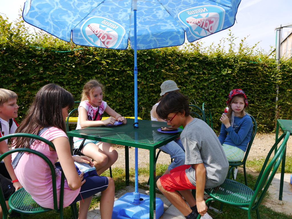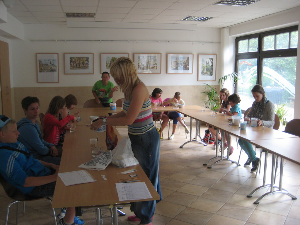 Auch am Dienstag und Mittwoch lautete nach einem ausgiebigen Frühstück das Tagesmotto: Action, Sonne, Strand und Wasser. Nach den Badeausflügen konnten die Schüler und Schülerinnen gemeinsam bei kleinen Spaziergängen den Wald und dessen Bewohner näher erkunden, sich auf dem Campeigenen Spielplatz austoben sowie Brettspiele, Tischtennis und Federball spielen. Der ein oder andere nutze die Zeit auch um Familie und Freunden Postkarten und Briefe aus Dübener Heide zu schreiben.