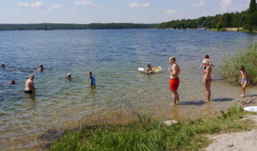 Nachdem die Kinder am Donnerstagmorgen schließlich von den ersten Sonnenstrahlen wachgekitzelt worden waren, konnten es alle kaum noch abwarten, bis es nach dem Frühstück endlich zum Baden, Plantschen und Spielen an den Bergwitzsee ging.