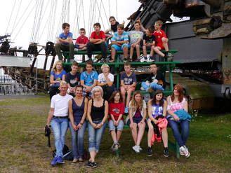 Am Nachmittag besuchte die Feriengruppe die Stadt aus Eisen, namens „Ferropolis“ und erkundete dort die Geschichte des Braunkohletagebaus. In dem einzigartigen Freiluftmuseum auf der Halbinsel, inmitten des Gremminer Sees, konnten die Ferienkinder fünf vor der Verschrottung bewahrte Braunkohle-Bagger, welche mit rund 7.000 Tonnen Stahl an eine untergegangene Industrieepoche erinnern, bestaunen. Neben den riesigen Stahlbaggern, konnten sich die Kinder zudem an kleinen mechanischen und voll funktionstüchtigen Baggern spielerisch probieren. Darüberhinaus lud die Kinder ein aus den Materialien Stahl und Gummi bespanntes Klettergerüst, welches den riesigen Abraumgeräten und Förderbändern nachempfunden wurde, zum Klettern ein.