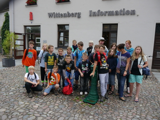 Nachdem Besuch des Tierparkes unternahmen die Ferienkinder mit der Altstadtbahn eine informative Fahrt durch die schöne und geschichtsträchtigte Lutherstadt Wittenberg. Auf den Spuren der Reformationsgeschichte lernten die Kinder dabei viele bedeutende Sehenswürdigkeiten, historische Gebäude und Einrichtungen, wie u.a. die Schlosskirche mit der berühmten Thesentür, den Marktplatz mit den Denkmälern von Luther und Melanchthon, das Lutherhaus sowie die sagenumworbene Luthereiche kennen.