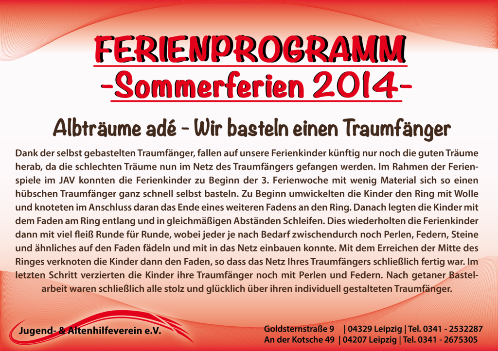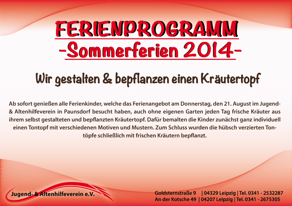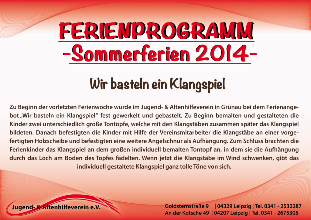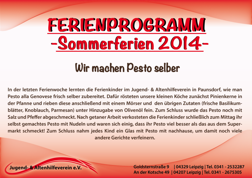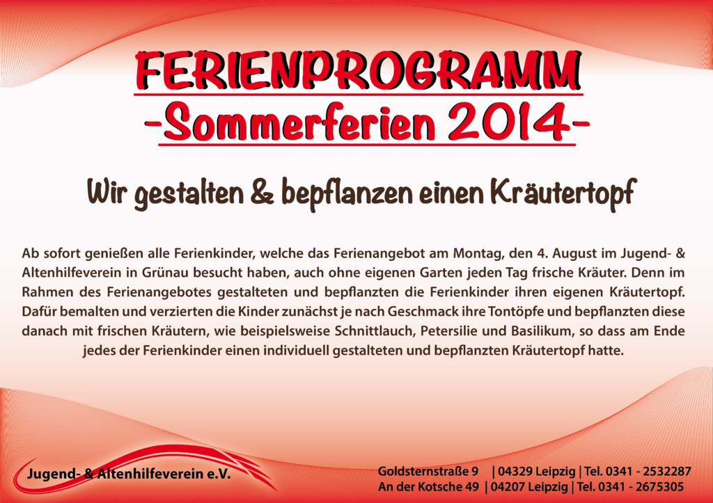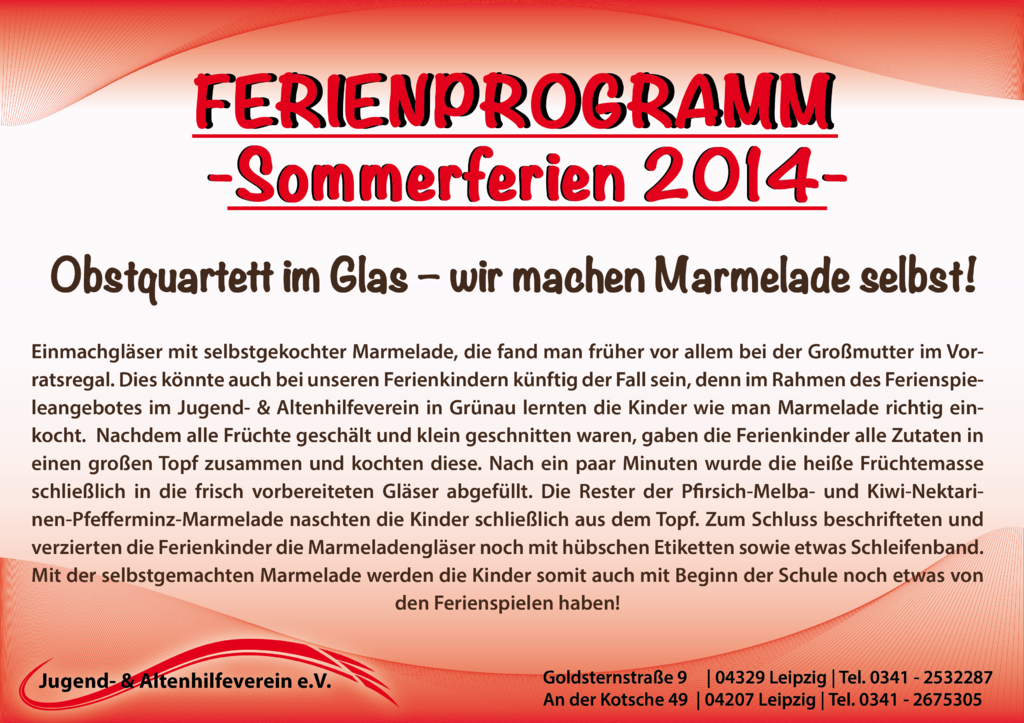 Wir freuen uns, dass die Kinder eine ereignisreiche und schöne Woche im Feriencamp des Jugend- & Altenhilfevereins hatten und bedanken uns für das Vertrauen der Eltern!