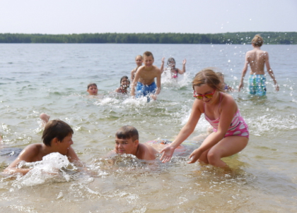 Nach einer aufregenden Gruselnacht wurden die Kinder am nächsten Morgen von warmen Sonnenstrahlen geweckt. Ein blauer Himmel, strahlender Sonnenschein und Temperaturen um die 25 Grad boten perfekte Bedingungen zum Baden. Mit Poolnudel, Wasserball und Wasserspritzpistole verlebten die Kinder einen tollen Tag im kühlen Nass des Bergwitz Sees. Geschafft vom ausgiebigen Baden verbrachten die Kinder den letzten Campabend bei einem gemeinsamen Filmabend.