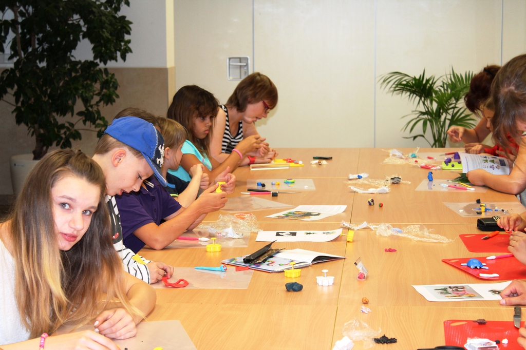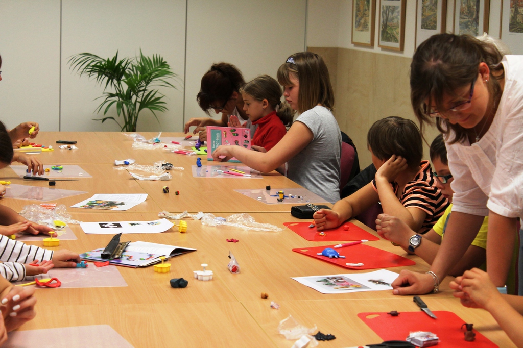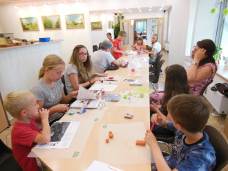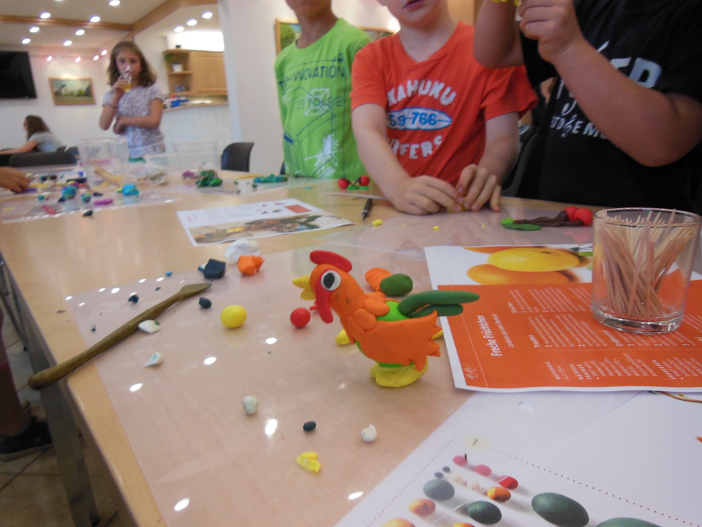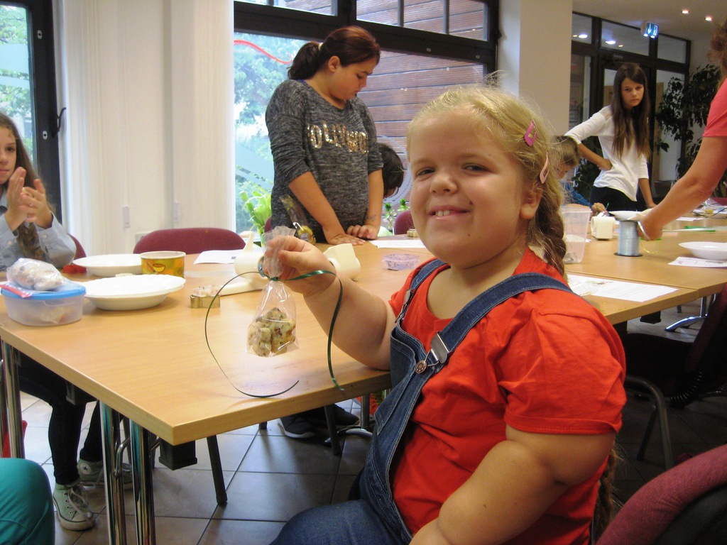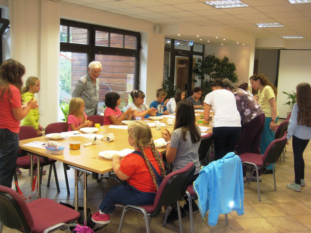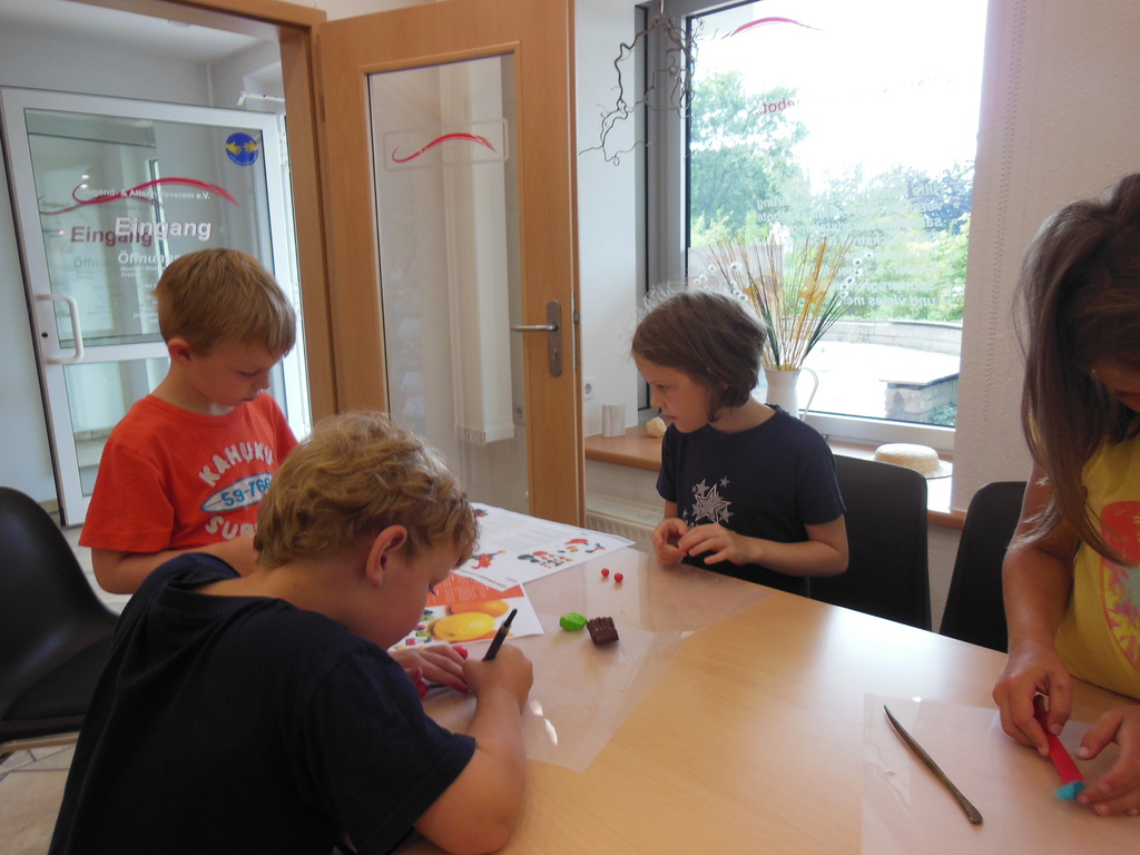 Gestalten mit Knetmasse, die zum Aushärten dann in den Backofen kommt, ist seit einigen Jahren im Trend. Sie wird inzwischen Fimo genannt und lässt sich im Gegensatz zur Plastelina aus früheren Zeiten besser verarbeiten. 19 Kinder formten und rollten aus verschiedenen Farben lustige Figuren wie Koalas und Minions und auch einige Schmuckstücke wie Ohrstecker und Kettenanhänger enstanden. Unterstützt wurden die Kinder von kreativen Senioren bzw. einer Auszubildenden, die zur Zeit ein Praktikum im Verein absolviert.