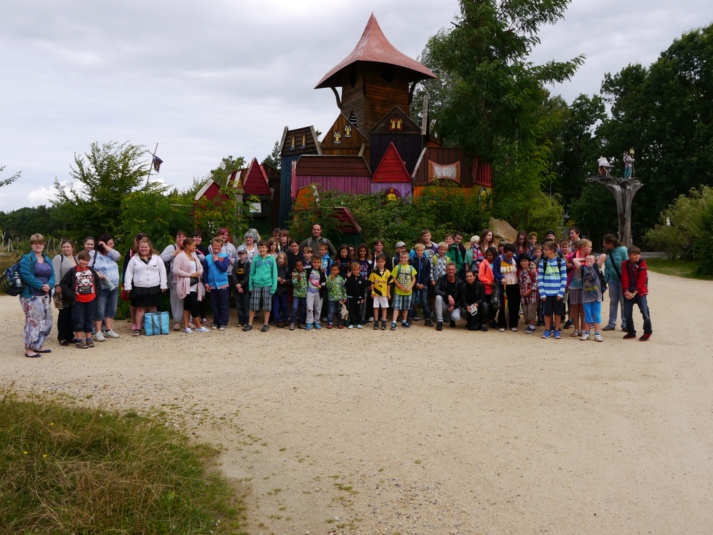 In der dritten Ferienwoche brach der Jugend- und Altenhilfeverein im Rahmen der Sommerferienspiele mit rund 60 Personen für eine Tagesfahrt zur Kulturinsel Einsiedel auf. Während sich einige Ferienkinder alleine oder gemeinsam mit Freunden zur Tagesfahrt angemeldet hatten, wurden einige Kinder auch durch Familienmitglieder begleitet. Pünktlich um 8.00 Uhr hatten alle Teilnehmer ihren Platz im Reisebus des Busunternehmens Leupold gefunden, so dass die Fahrt zur Kulturinsel Einsiedel beginnen konnte.