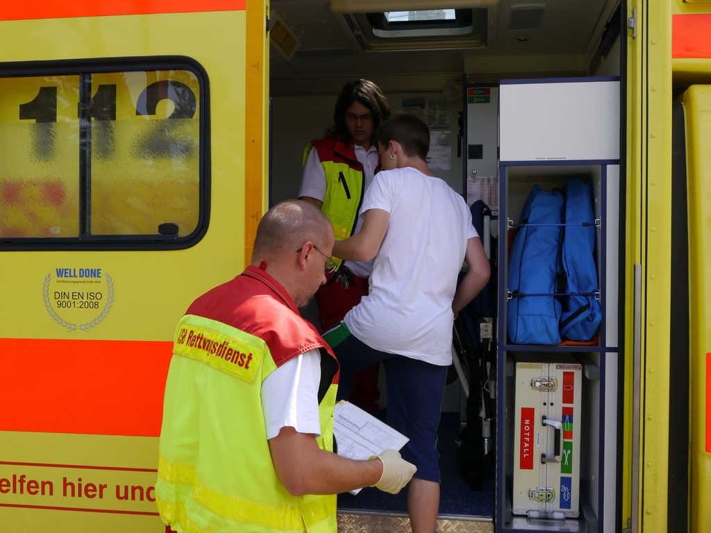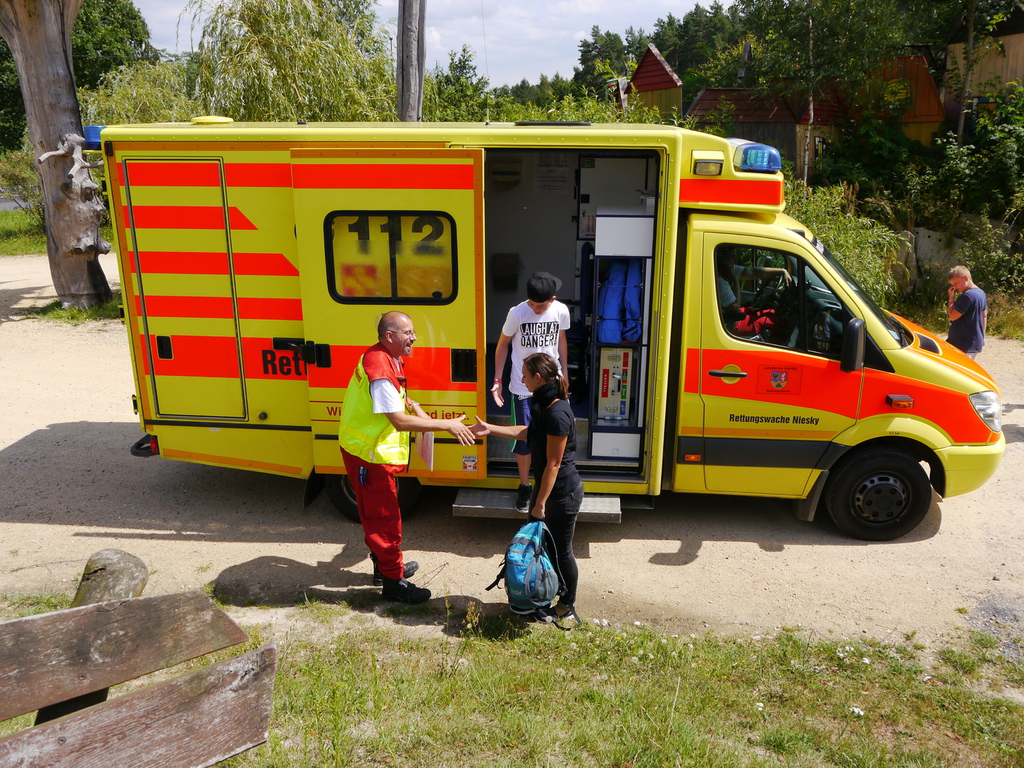 Leider hat sich diesmal auch unser Ferienkind Benjamin beim Spielen eine kleine Platzwunde am Kopf zugezogen, so dass eine ärztliche Versorgung im Krankenhaus Görlitz erforderlich war. Ein herzliches Dankeschön an dieser Stelle auch an den Rettungsdienst des Arbeiter-Samariter-Bundes, welcher Benjamin gemeinsam mit Betreuerin Tina vom Jugend- und Altenhilfeverein sogar nach der ärztlichen Behandlung im Krankenhaus von Görlitz zurück zur Kulturinsel Einsiedel gefahren hat! Trotz des kleinen Schrecks war unser Benjamin am Nachmittag erfreulicherweise bereits wieder Wohl auf!