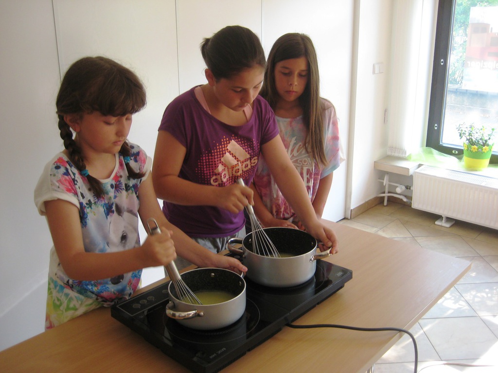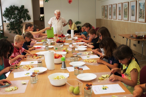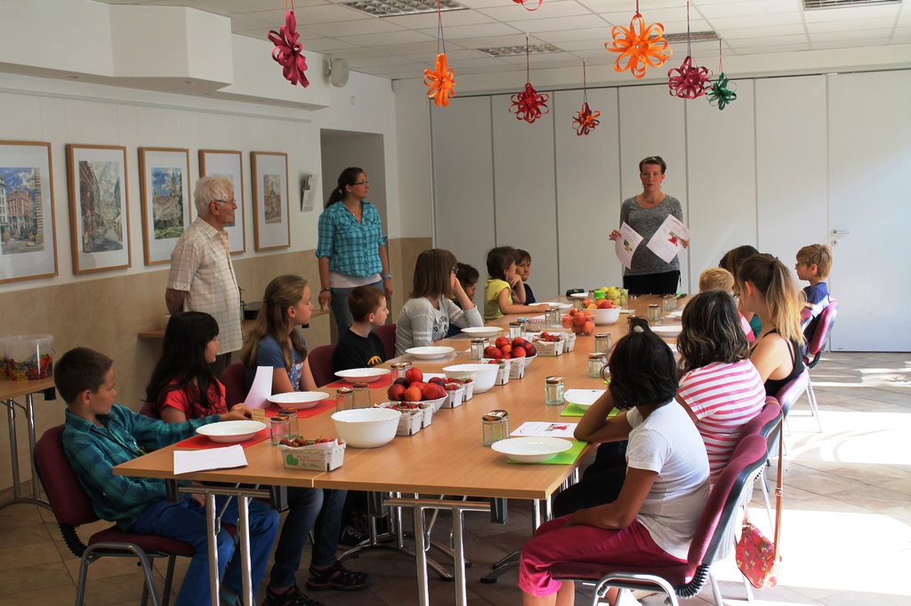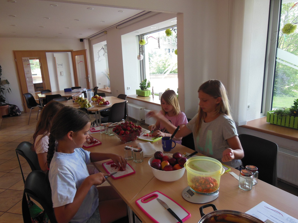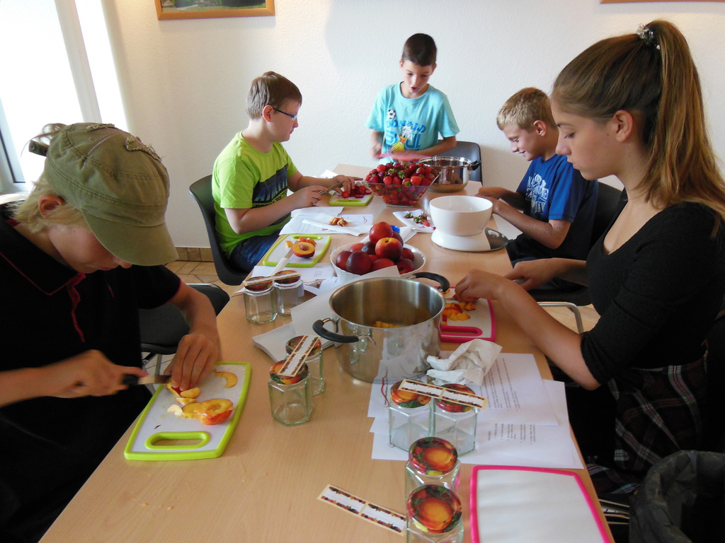 Alte Traditionen neu zu beleben und Kindern nahe zu bringen, ist auch eines unserer Ziele bei der Auswahl von Ferienangeboten. Die Teilnehmerzahlen geben uns recht, denn beim Marmelade kochen trafen sich ca. 30 Kinder in den Vereinsräumen in Paunsdorf und Grünau. Früher aus der Not heraus geboren, wurde vieles was in den Gärten wuchs selbst verarbeitet. Inzwischen ist es Hobby und Kult, eigene Rezepte auch bei der Verarbeitung von Obst zu Marmelade zu probieren, aber es gibt auch unzählige Anregungen in Büchern, Zeitschriften und im Internet.Wir haben für das Ferienangebot 2 Rezepte ausgewählt, die die Kinder mit viel Eifer umgesetzt haben. Stolz waren alle über das entstandene Ergebnis und konnten jeweils ein Glas von der Erdbeer-Nektarine-Vanille-Marmelade und von der Apfel-Birne-Limette-Variante mit nach Hause nehmen.