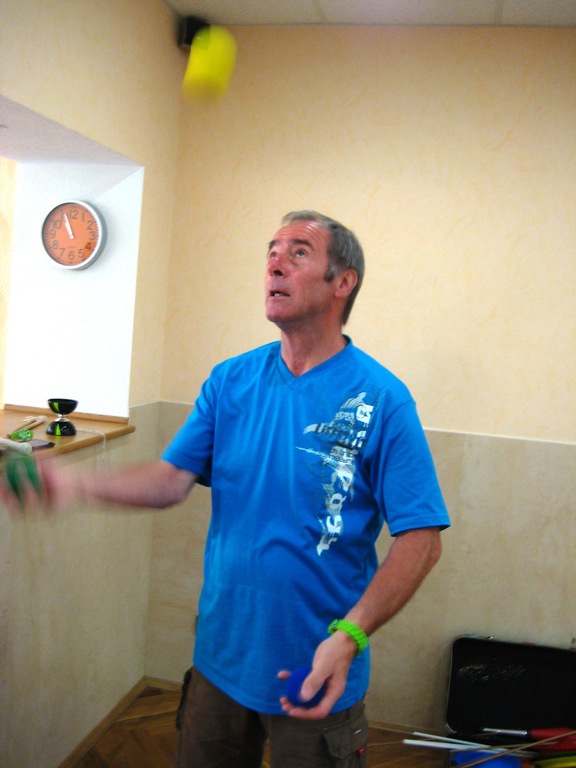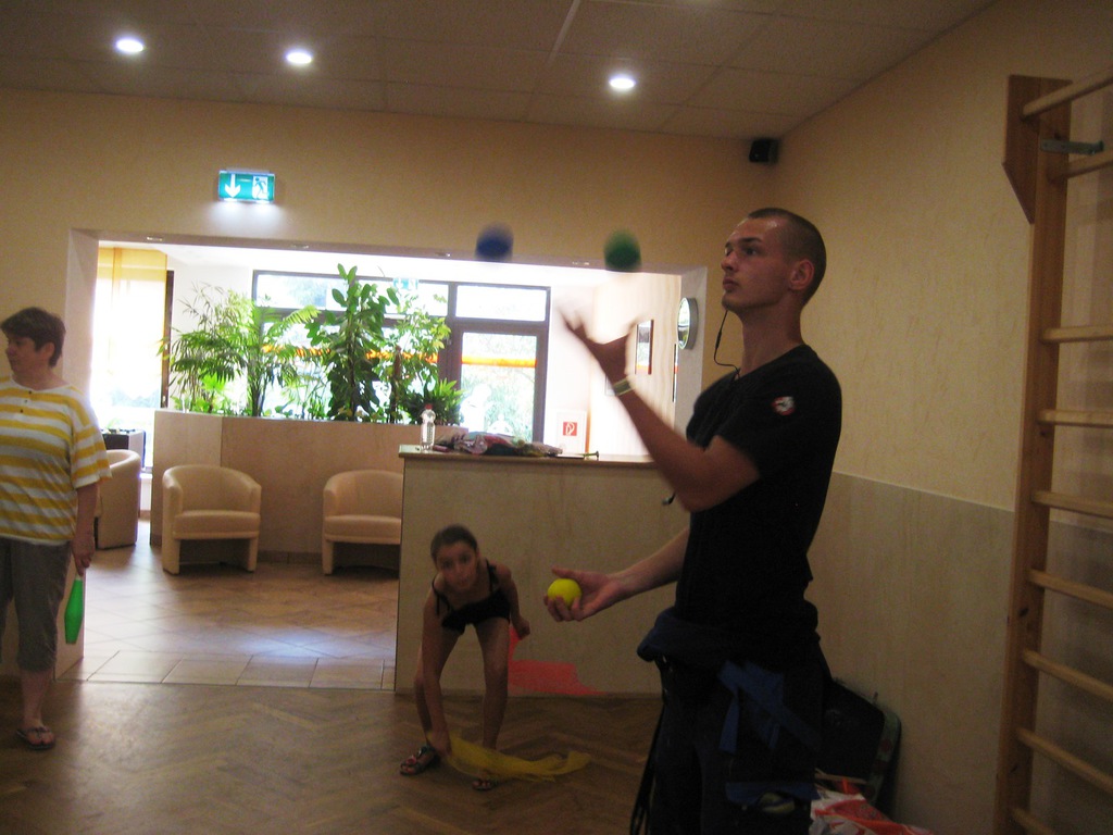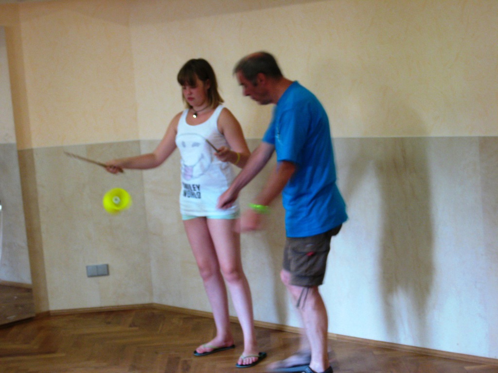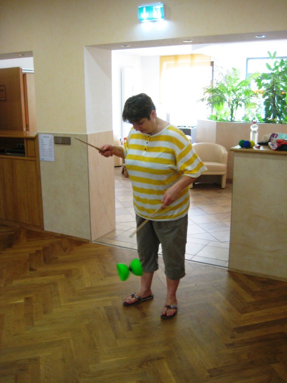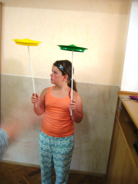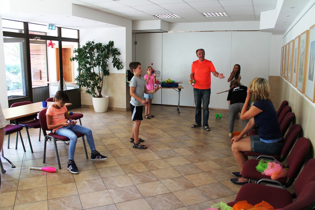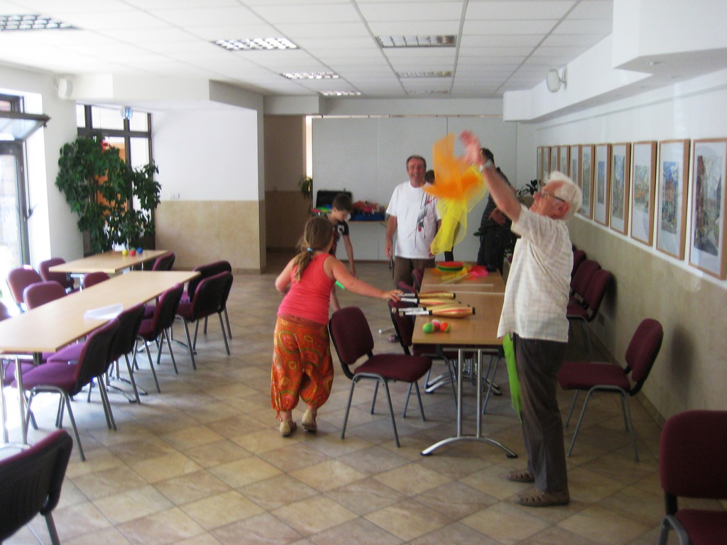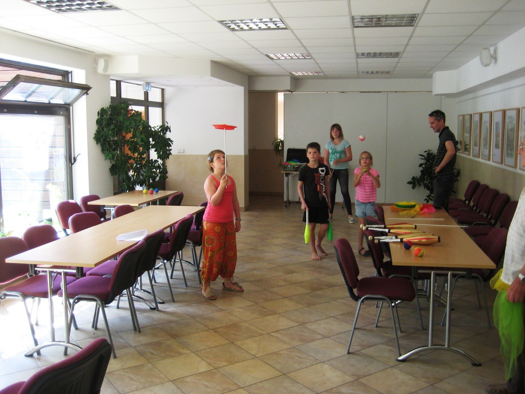 Gut gelaunt starteten die Kinder in Teil 2 des Jonglierkurses. Einige hatten zuhause geübt und konnten schon tolle Ergebnisse aufweisen. Zu dem Spiel mit Bällen kamen am heutigen Tag Übungen mit dem „Diabolo“ und Jonglage mit Tellern, was bei einigen auf Anhieb gut gelang. Auch unsere Senioren, die sich für das Thema interessierten waren mit Eifer dabei und hatten gemeinsam mit den Kindern viel Freude.