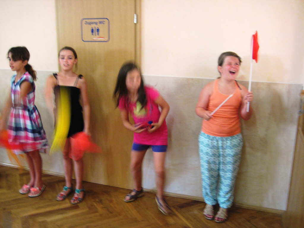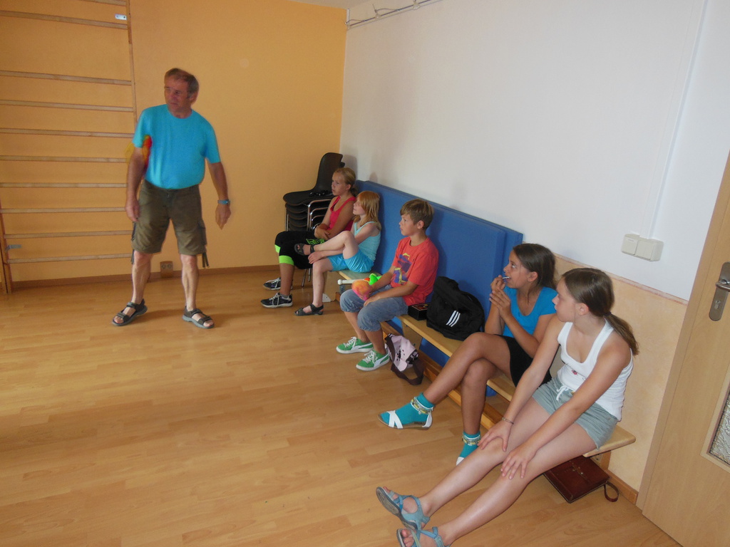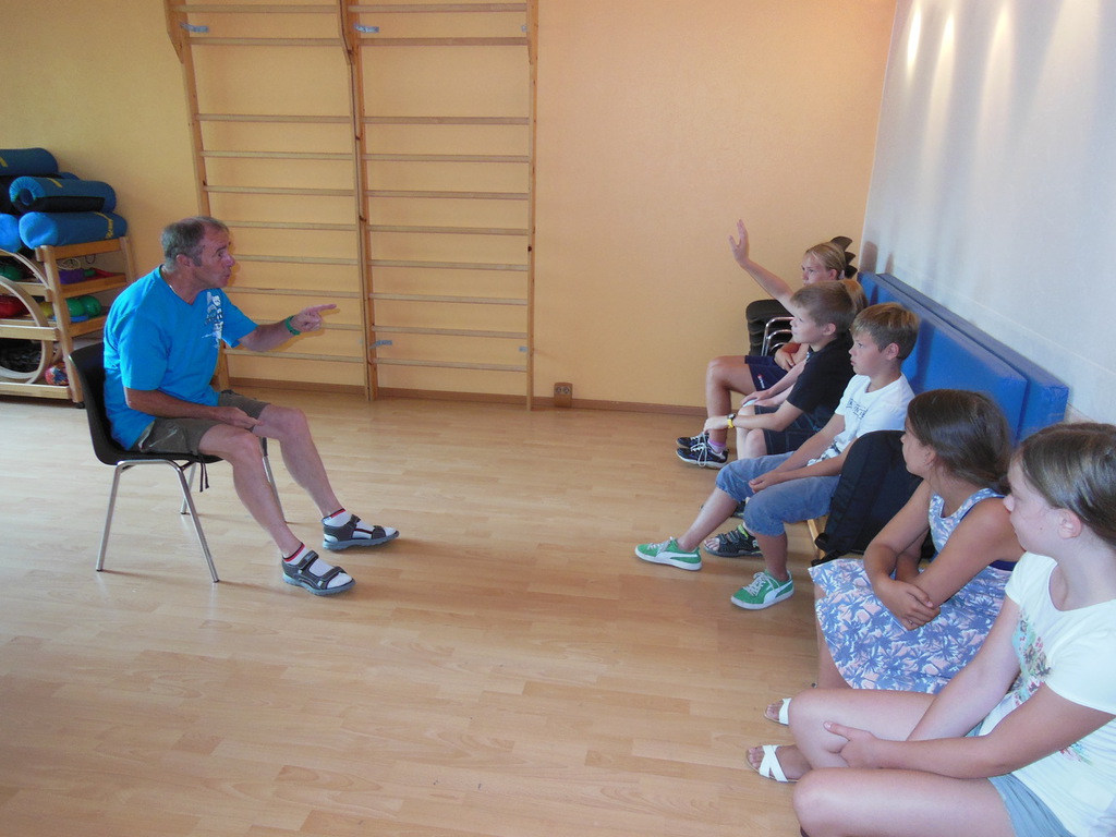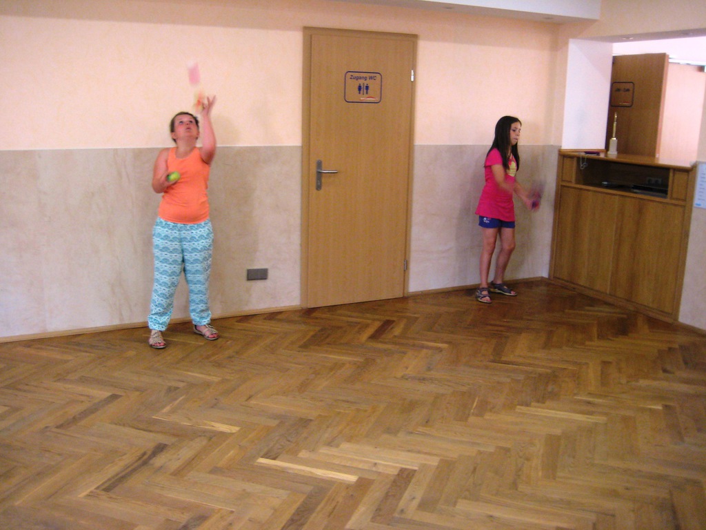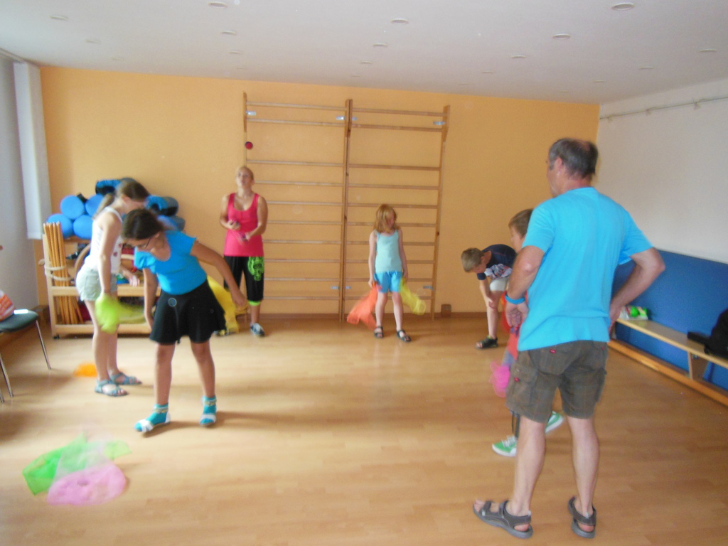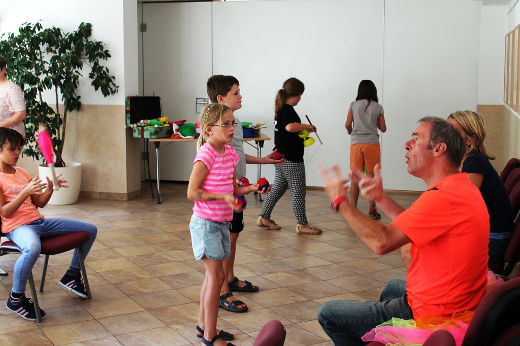 Zugegeben, aller Anfang ist schwer: Plumps – schon fällt der Ball zu Boden. Denn es ist gar nicht so leicht, mit zwei Händen drei Bälle in der Luft zu halten. Aber unsere Ferienkinder haben in einem 3-tägigen Jonglierkurs im Rahmen der Ferienspiele bewiesen, dass auch Jonglieren erlernbar ist. Angefangen mit Tüchern, welche langsamer fliegen als Bälle und sich somit auch leichter greifen lassen, konnten die Ferienkinder während der drei Tage nach und nach ihre Leistung steigern. Stück für Stück verbesserten die Kinder ihre Reaktionsfähigkeit sowie das Konzentrationsvermögen und Zusammenspiel von Augen und Händen. Mit den ersten Erfolgen, stellte sich auch die Motivation zur Fortsetzung des Trainings ein. Nach und nach stiegen die Kinder dann auch auf Bälle, Keulen und Sticks um und konnten erste Erfolge verzeichen. Wir sind uns sicher, dass ein Großteil der Ferienkinder zukünftig auch zuhause die erlernten Fähigkeiten weiter üben wird.