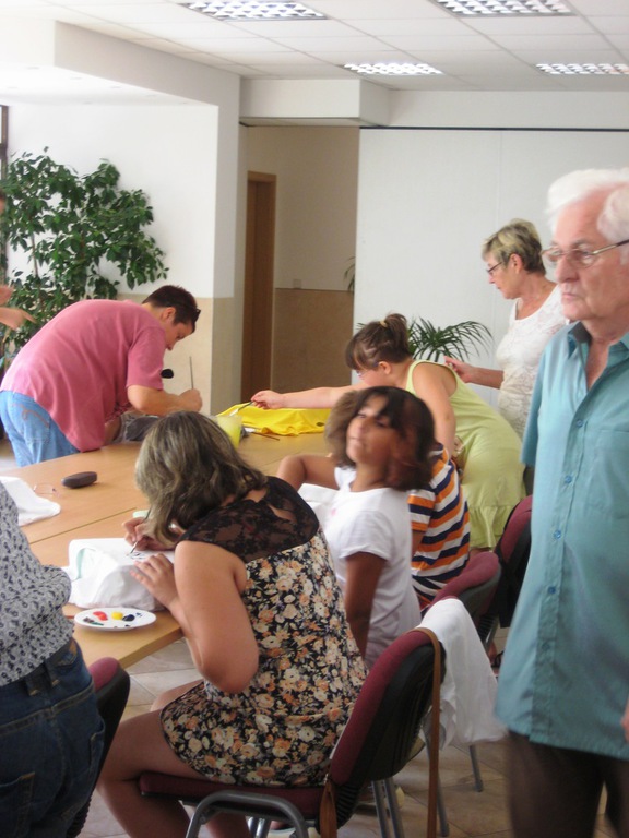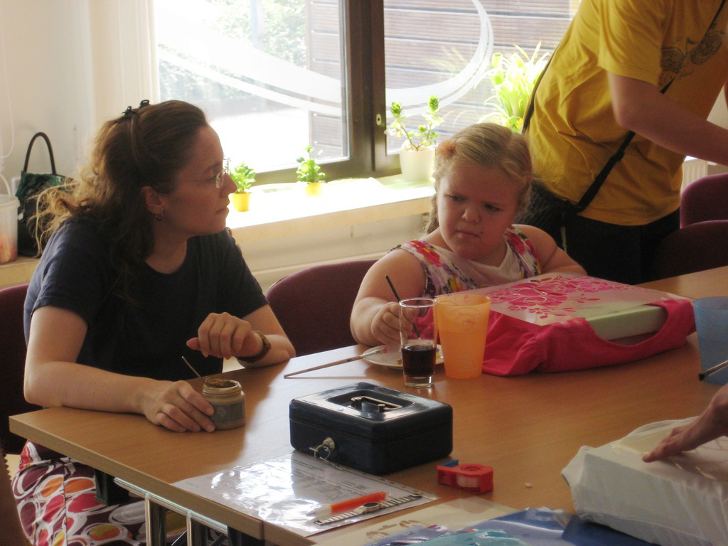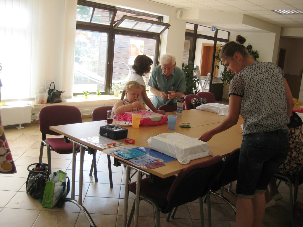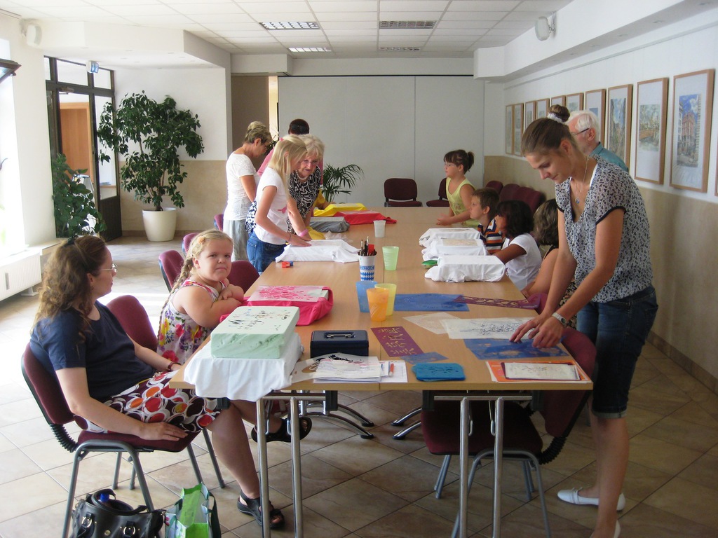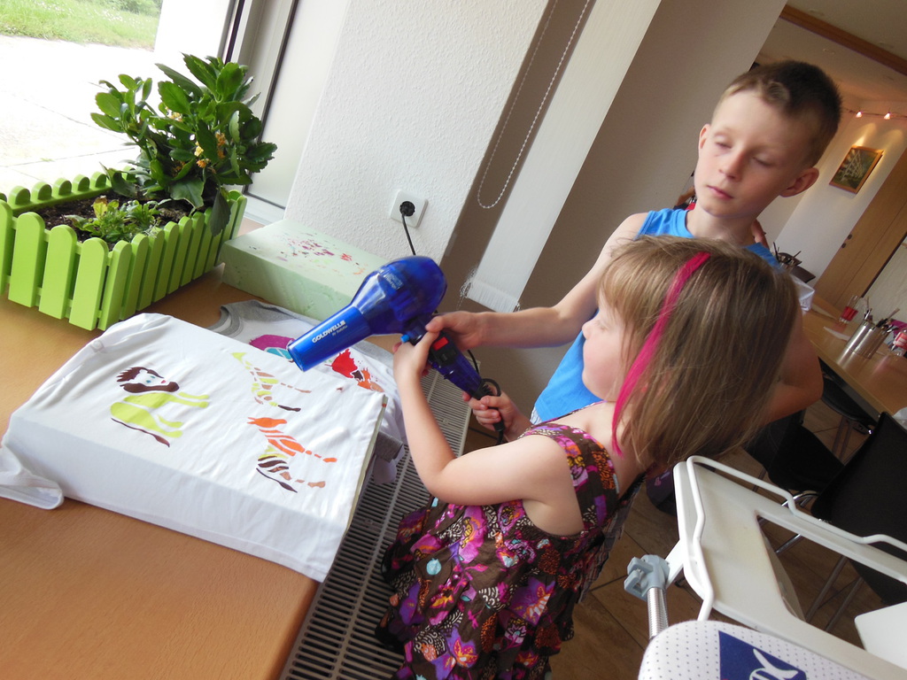 Mit einem selbst mitgebrachten hellem T-Shirt sowie vom Verein bereit gestellter Stofffarbe machten die Ferienkinder aus ihren alten langweiligen T-Shirts individuelle Designerstücke. Während der Großteil der Ferienkinder ihr T-Shirt mit Hilfe einer Schablone aufpeppte, bemalten manche Kinder ihr T-Shirt frei nach Belieben. So oder so bereitete das Gestalten der T-Shirts allen Freude. Wer keine Lust hatte ein T-Shirt zu bemalen, der konnte sich bei der vom Jugendamt der Stadt Leipzig initiierten kreativen Gestaltung von Jubiläums-Löwen zum Thema „1000 Jahre Leipzig“ beteiligen. Die Kinder gaben sich viel Mühe und sind nun gespannt, ob sie bei der Prämierung dabei sind.