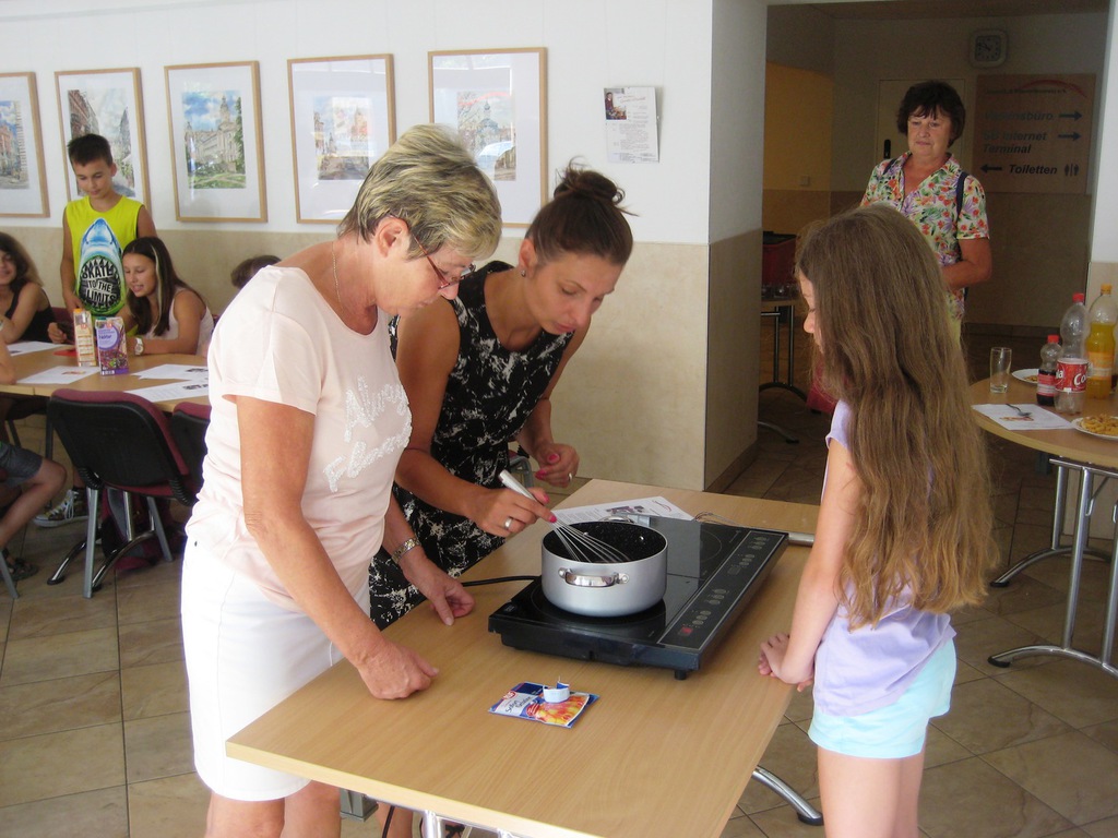 Jeder kennt sie, jeder liebt sie: Gummibärchen und Bonbons. Kaufen kann man sie mittlerweile in jedem Supermarkt, wobei man die kleinen Leckereien doch auch ganz leicht selber machen kann. Daher trafen sich zu Beginn der vierten Ferienwoche einige Ferienkinder im Jugend- und Altenhilfeverein in Grünau zur Herstellung von Bonbons und Gummibärchen. Die Zutaten waren übersichtlich und die Herstellung ebenfalls relativ leicht, so dass die Kinder mit Unterstützung von Erwachsenen schnell fertig wurden. Zum Schluss füllten die Kinder die Leckereien noch in kleine Schraubgläser, welche ebenfalls noch hübsch verziert wurden!