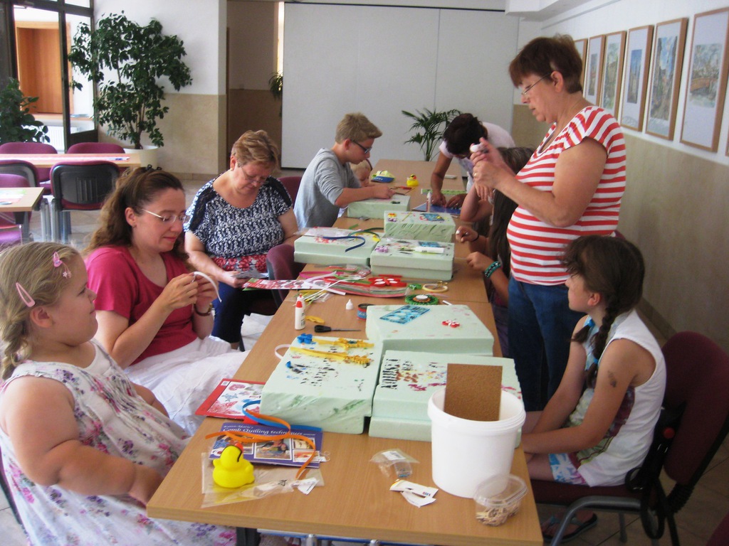 Gummibärchen und Bonbons, ein Genuss für Klein aber auch für Groß. Dieses einmal selbst herzustellen, war der Wunsch vieler Kinder, den wir in vergangenen Ferien schon erfüllen konnten. Neu aufgelegt, mal anderen Fruchtsaft probiert, fand auch dieses Angebot im Sommer wieder viele Freunde. Den Bonbons war es irgendwie zu warm, die klebten leider weiter an der Folie, aber die Gummibärchen wurden wunderbar. Glücklich konnte jedes Kind eine kleine Geschenktüte mit nach Hause nehmen. Im benachbarten Raum staunten die Seniorinnen und Senioren über dieses tolle Ergebnis, sie selbst hatten für ihre sonst so kreativen Ideen keine Lust, sondern planten für etwas kühlere Tage.