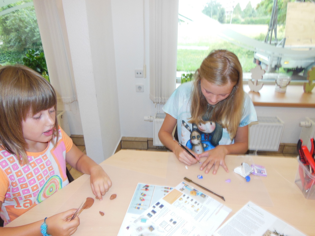 In der letzten Ferienwoche lud der Jugend- und Altenhilfeverein zu dem beliebten Ferienangebot gestalten mit Fimo ein. Das Material Fimo lässt sich einfach formen und modellieren und ist daher genau das richtige Material für einzigartige Schmuckstücke, bunte Glücksbringer, bezaubernde Dekorationen und kleine Geschenke. Nachdem die Ferienkinder ihrer Kreativität freien Lauf gelassen hatten und die unter-schiedlichsten Formen in verschiedenen Farben modelliert hatten, wurden die Schmuckstücke und Figuren schließlich noch in den Ofen zum aushärten gelegt.
