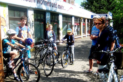 Unserem Vorschlag, das Fahrrad zum Ferienbeginn in der Fahrradselbst-hilfewerkstatt fit zu machen, waren zahlreiche Kinder gefolgt. Einige starteten in der Goldsternstraße 9 gemeinsam, andere warteten bereits an der Werkstatt in der Waldzieststr. 6 auf die anderen. Leider streikte dann unsere Kamera, so dass wir hier nur von den vielfältig genutzten Möglichkeiten berichten können. Angefangen mit einer gründlichen Reinigung und dem Ölen von Ventilverschraubungen, ging es mit dem Nachstellen der Fahrradkette und der Reparatur von Beleuchtung am Fahrrad weiter. Lockere Teile konnten befestigt werden und wer noch keine Registrierung seines Fahrrades vorgenommen hatte, konnte auch dies mit erledigen. Unser Projekt, was wir dank ehrenamtlichem Engagement von Vereinsmitgliedern kontinuierlich seit 2 Jahren betreiben, hat wieder neue Freunde gewonnen, die gern wiederkommen werden.
