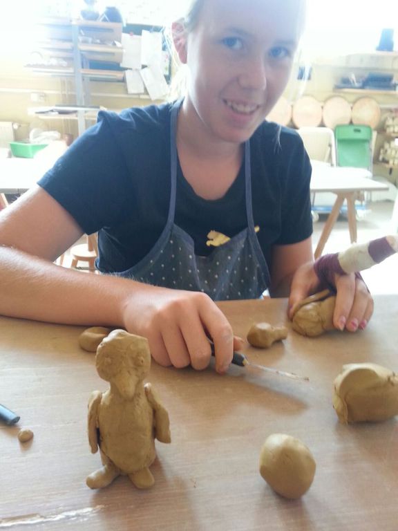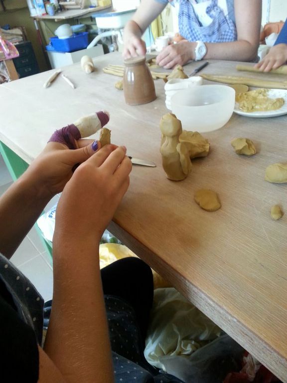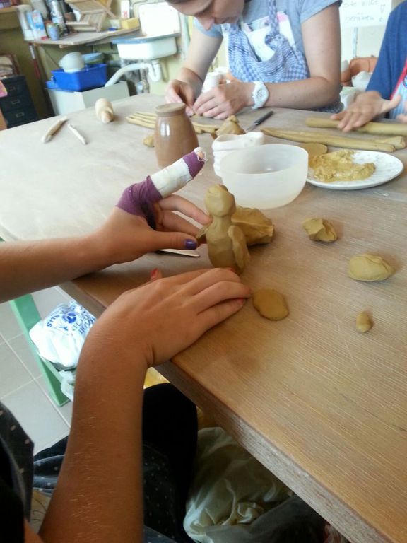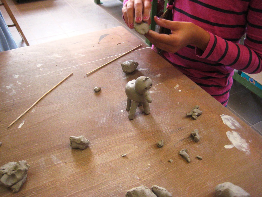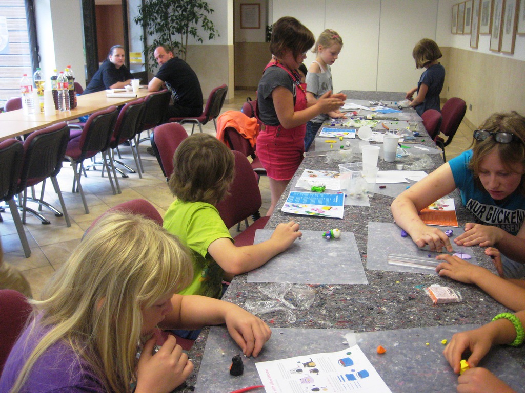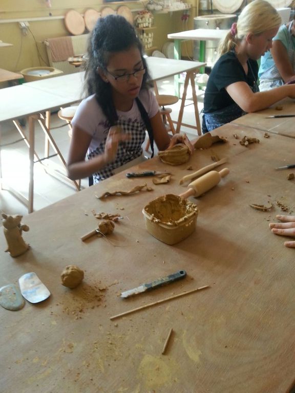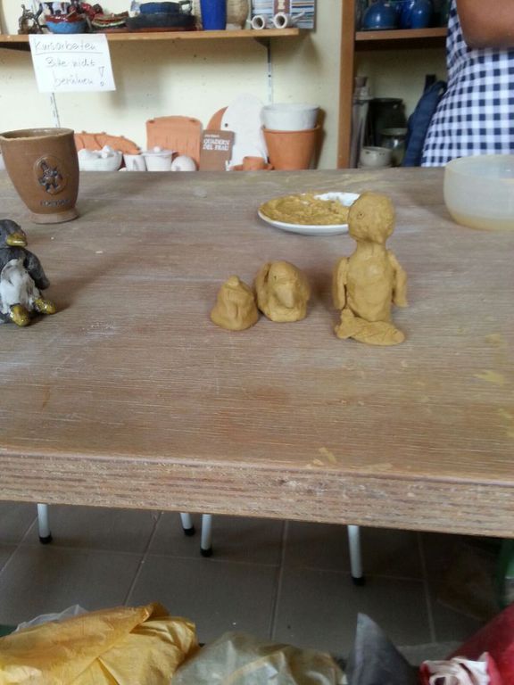 Zu Beginn der 4. Ferienwoche besuchten die Ferienkinder in Grünau die Keramikwerkstatt „Andrea Doria“ auf dem Gelände der ehemaligen Leipziger Baumwollspinnerei. Nach einer kurzen Einweisung durften die Kinder auch schon zum Thema Tiere wild drauflos kneten und formen. Nachdem die Kinder ihre Kunstwerke vollendet hatten, übergaben sie diese zum Trocknen und Brennen an die Keramikwerkstatt. Sobald in ein paar Tagen diese Arbeitsschritte beendet werden, können die Kinder bei Bedarf sich auch noch zur farbigen Gestaltung ihrer Figuren in der Keramikwerkstatt anmelden oder diese zuhause mit Acrylfarbe anmalen.