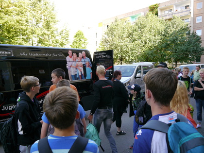 Neben der Tagesfahrt in den Freizeitpark Belantis bot der Jugend- und Altenhilfeverein in der letzten Ferienwoche eine zweite Erlebnisfahrt in den Filmpark Babelsberg an. Vor den Toren Berlins erwarteten die knapp 60 Ferienkinder im Themenpark eine abwechslungsreiche Mischung aus Entertainment, Action und authentischer Film- und Fernsehwelt. Im Atelier der "Traumwerker", in faszinierenden Kulissen oder bei der geführten Besichtigung des "Original GZSZ-Außensets" konnten die Kinder die magische Welt von Film und Fernsehen erleben. Bei der spektakulären Stuntshow, der Show „Die Drei Musketiere“ und der Show „Filmtiere vor der Kamera“ wurde die Filmwelt lebendig und ermöglichte den Kindern interessante Einblicke in die aufregende Arbeit der Filmprofis. Für den ultimativen Nervenkitzel sorgten zudem das 4D-Actionkino, das weltweit erste interaktive XD-Erlebniskino und das geheimnisvolle U-Boot „Dook 8“. Leider verging die Zeit im Filmpark Babelsberg wie im Fluge, so dass das Besuchen und Anschauen der ca. 20 Attraktionen und vier Shows kaum zu schaffen war. Auf der Rückfahrt nach Leipzig waren sich die Kinder im Bus jedoch einig, dass ein erneuter Besuch des Filmparkes Babelsberg definitiv lohnenswert wäre!