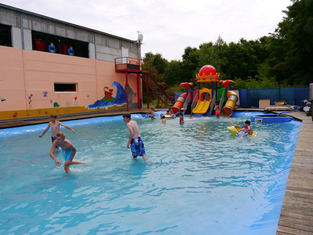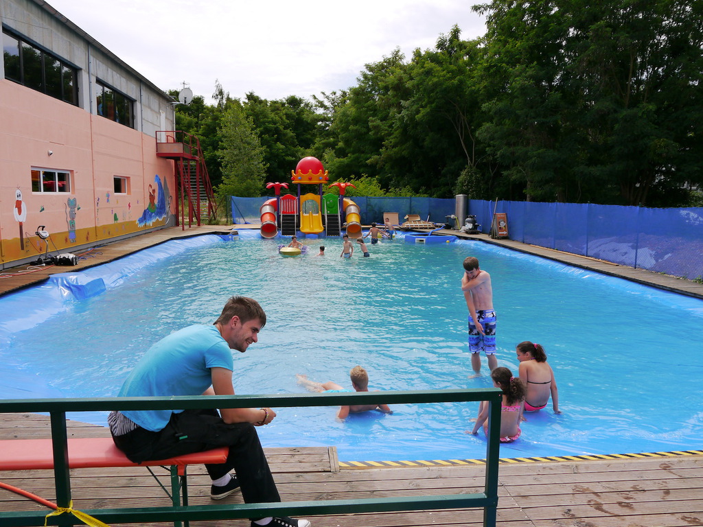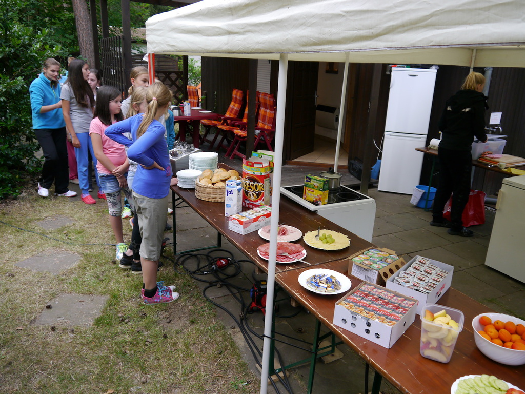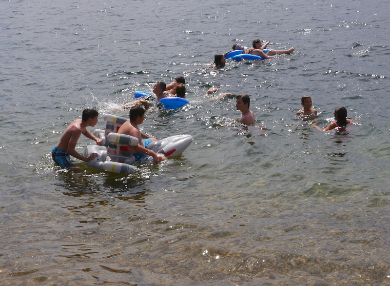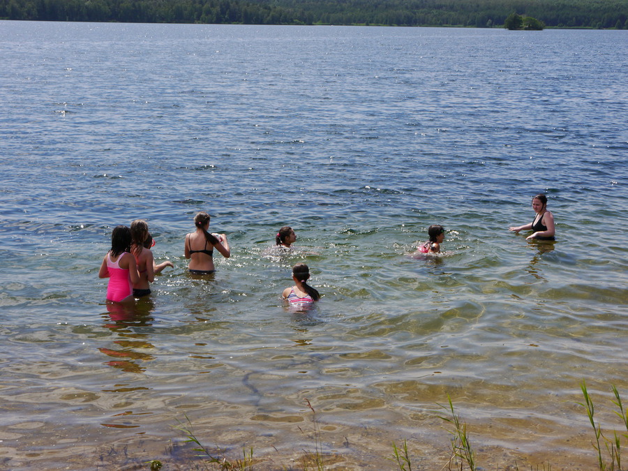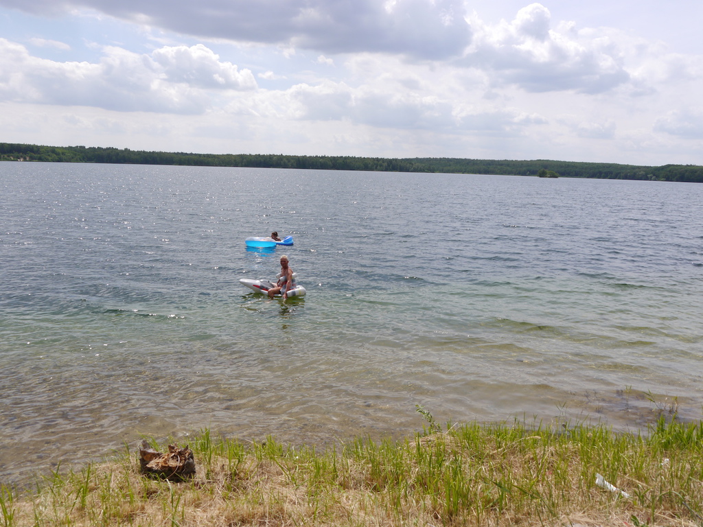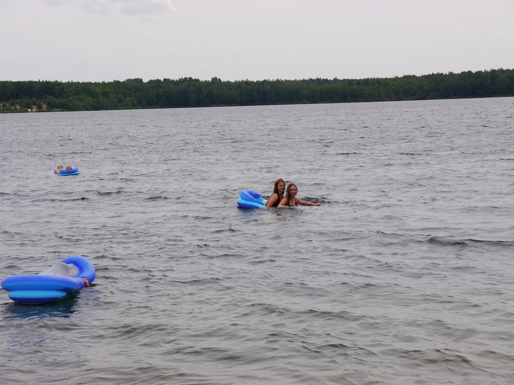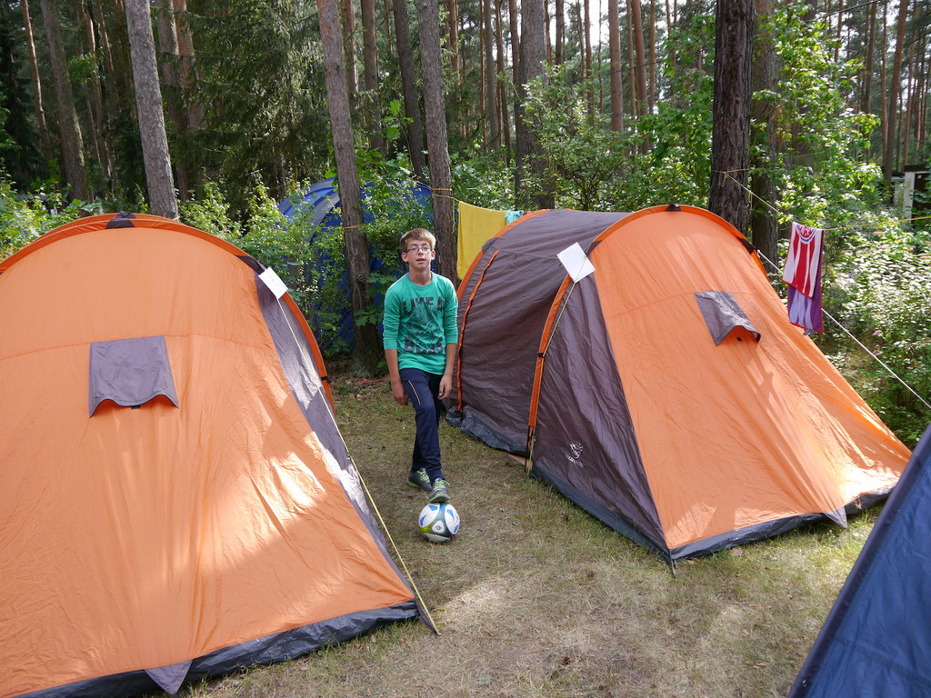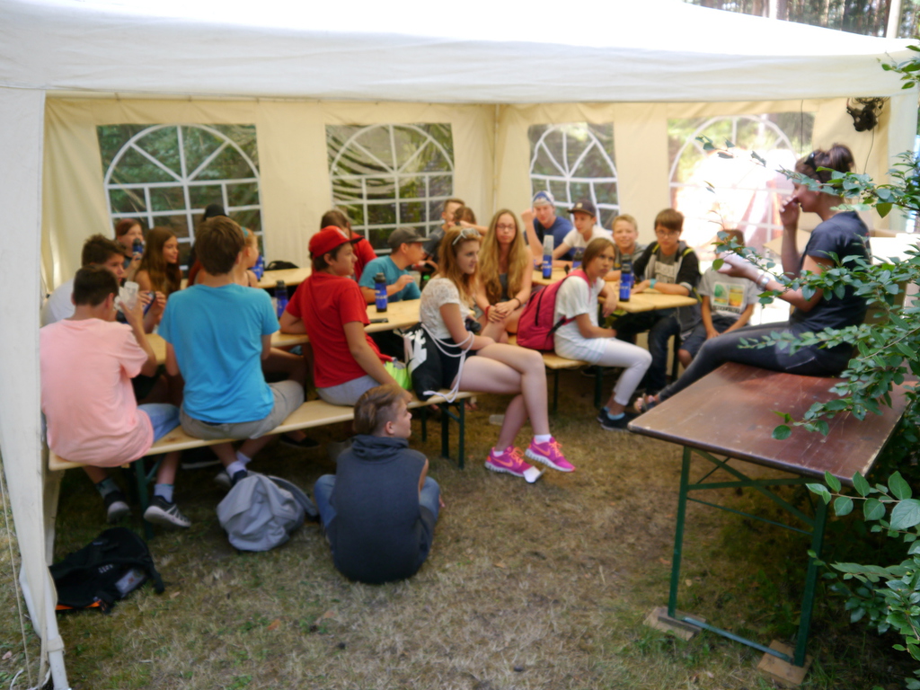 Im Camp angekommen, bezogen die Kinder zunächst ihre Zelte und erhielten eine mit ihrem Namen beschriftete Trinkflasche, welche uns durch die WBG Kontakt zur Verfügung gestellt worden sind. Je nach Geschmack konnten sich die Kinder im Camp die Trinkflaschen mit dem Getränk ihrer Wahl jederzeit auffüllen und diese dann zu Tagesausflügen oder auch in ihre Zelte mitnehmen. Da ein Teil der Kinder, das Camp bereits von vergangenen Ferienfahrten kannte, führten diese stolz die anderen Kindern auf dem Waldgrundstück herum, so dass schnell alle Kinder Bescheid wussten. Am Nachmittag wurde das schöne Wetter noch für ein paar Badestunde am Bergwitzsee genutzt. Auch am zweiten Camptag zog es unsere Ferienkinder noch einmal ins „kühle Nass“. Mit Wassernudeln, Luftmatratzen, Frisbees und Kartenspielen verbachten die Kinder einen schönen Tag am Bergwitzsee.
