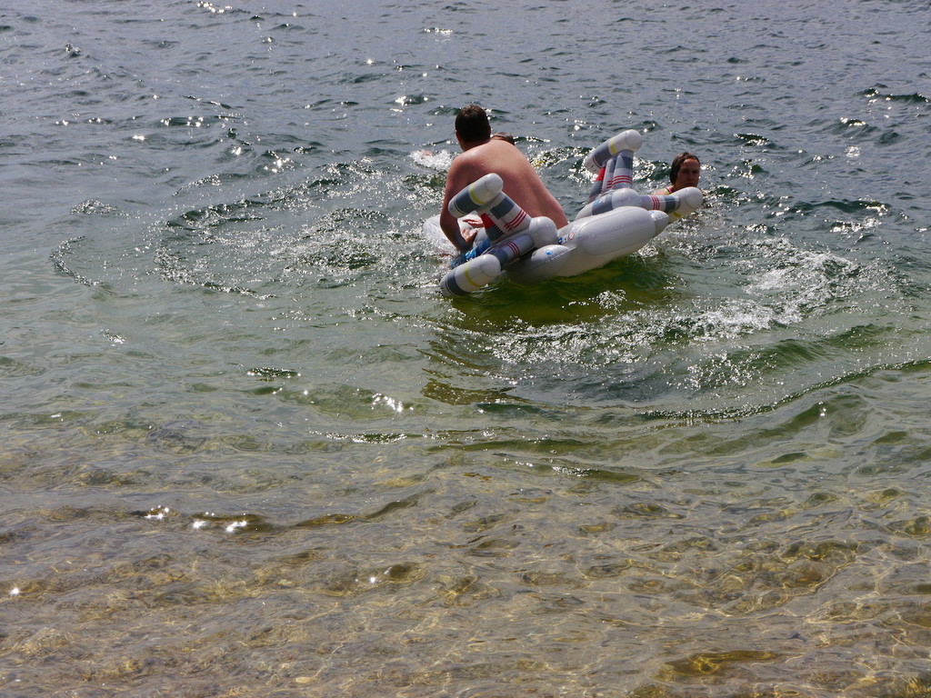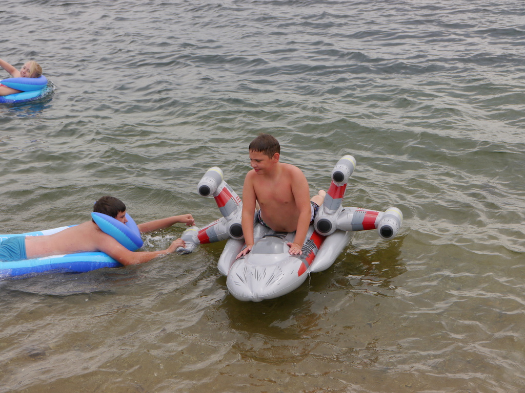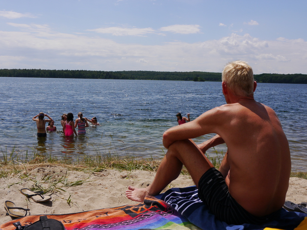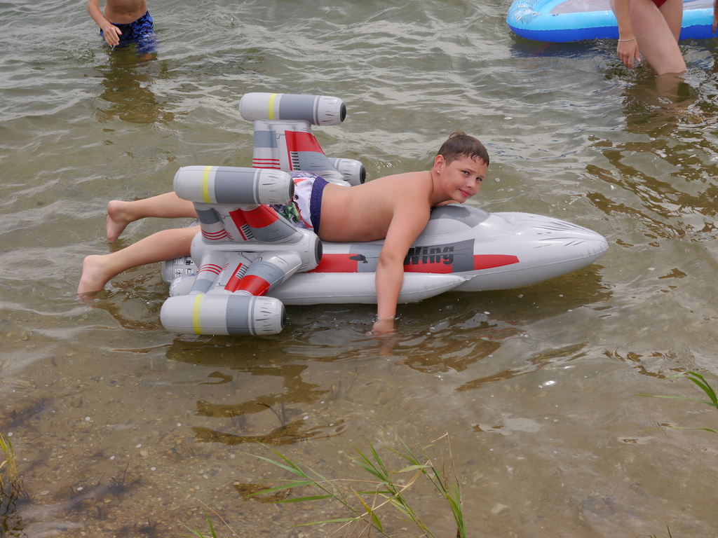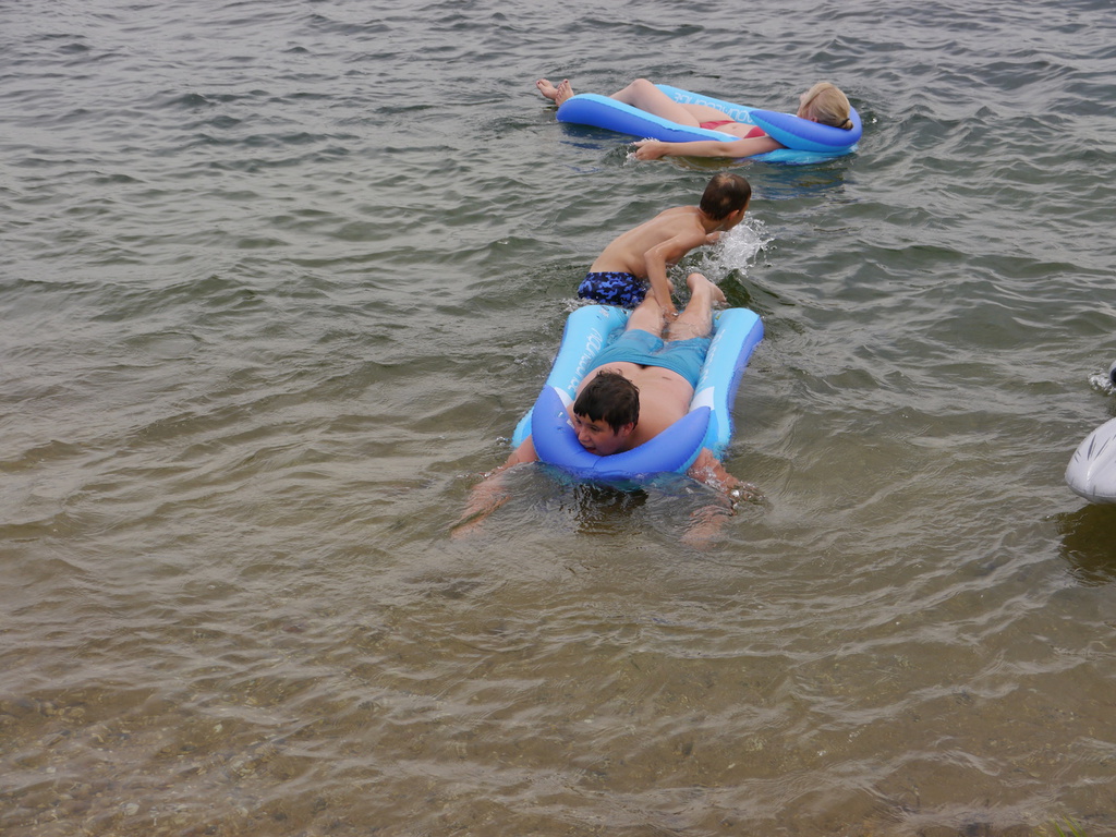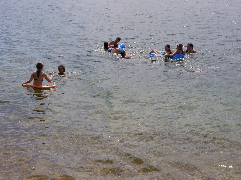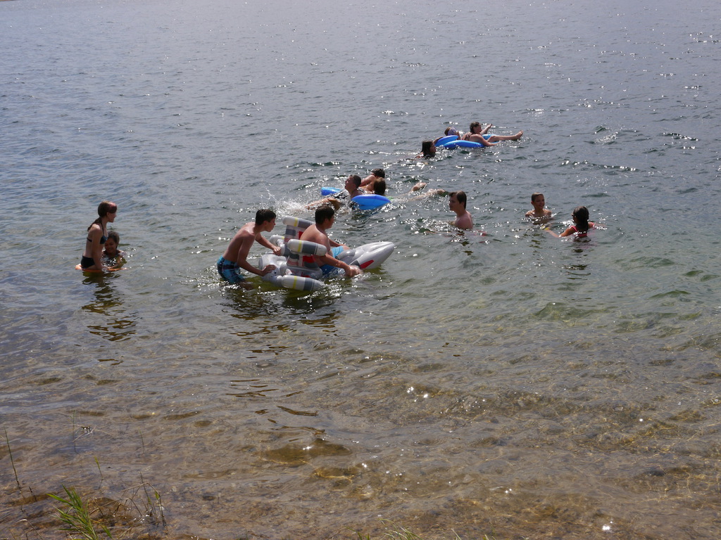Im Camp angekommen, bezogen die Kinder zunächst ihre Zelte und erhielten eine mit ihrem Namen beschriftete Trinkflasche, welche uns durch die WBG Kontakt zur Verfügung gestellt worden sind. Je nach Geschmack konnten sich die Kinder im Camp die Trinkflaschen mit dem Getränk ihrer Wahl jederzeit auffüllen und diese dann zu Tagesausflügen oder auch in ihre Zelte mitnehmen. Da ein Teil der Kinder, das Camp bereits von vergangenen Ferienfahrten kannte, führten diese stolz die anderen Kindern auf dem Waldgrundstück herum, so dass schnell alle Kinder Bescheid wussten. Am Nachmittag wurde das schöne Wetter noch für ein paar Badestunde am Bergwitzsee genutzt. Auch am zweiten Camptag zog es unsere Ferienkinder noch einmal ins „kühle Nass“. Mit Wassernudeln, Luftmatratzen, Frisbees und Kartenspielen verbachten die Kinder einen schönen Tag am Bergwitzsee.