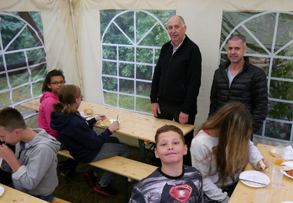 Nach einer auf-regenden Nacht er-hielten die Kinder am Donnerstagfrüh Besuch vom Vor-stand der WBG Kontakt. Als jahre-langer Hauptunter-stützer des Heide-Camps war es dem Vorstandvorsitz-endem, Herrn Keim, gemeinsam mit seinem Vorstandskollegen Herrn Böttger ein Anliegen das Camp sich auch einmal selbst anschauen und mit erleben zu können. Nach einer kleinen Camp-Besichtigung freuten Herr Keim und Herr Böttger sich über den direkten Austausch mit den Kindern und leisteten diesen beim Frühstück noch etwas Gesellschaft, bevor sie sich wieder auf den Weg nach Leipzig machten. Da am Donnerstag das Wetter leider keine Besserung zeigte und bei den Kindern der Wunsch nach einem Badetag deutlich wurde, fuhren die Betreuer am Vorletztentag mit den Kindern ins 60 km südlich von Berlin gelegene Tropical Island. Mit dem Besuch von Europas größter tropischer Urlaubswelt bescherte der Jugend- und Altenhilfeverein den Kindern einen ganz besonderen Tag. In der Tropenhalle boten sich den Kindern zahlreiche Attraktionen, wie der größte Indoor-Regenwald oder Deutschlands höchster Wasserrutschen-Turm. Am Abend ging es dann wieder von den Tropen zurück in den Mischwald der Dübener Heide, wo die Kinder den erlebnisreichen Tag bei einem DVD-Abend mit Chips ausklingen ließen.