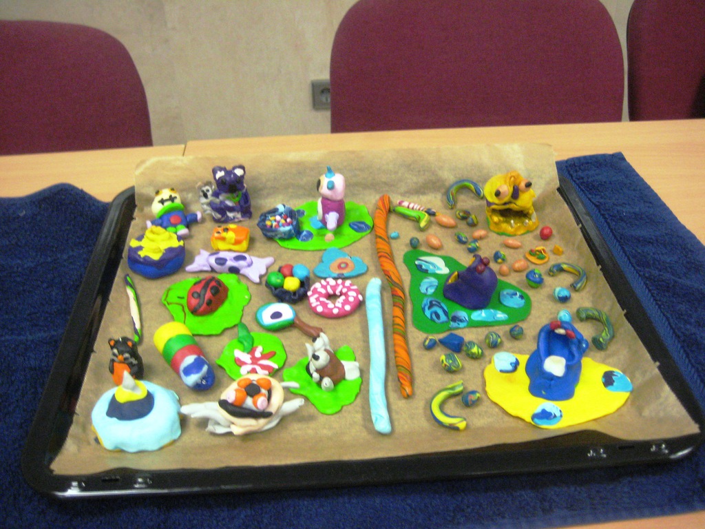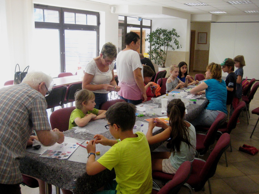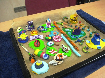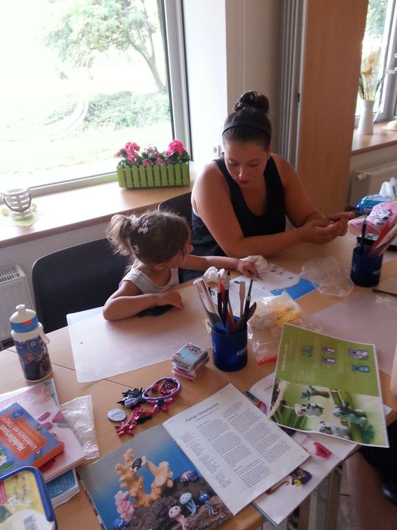 Fimo - die bunte Knetmasse mit vielseitigen Talenten. Ob Schmuckstücke, Dekofiguren oder im Winter als Inhalt einer Schneekugel lässt sich die Knete beliebig verformen und ganz nach dem Geschmack der Kinder zusammenfügen. Im Unterschied zur Knetmasse aus den Kindertagen unserer Seniorinnen und Senioren lässt sich Fimo durch Erhitzen im Backofen aushärten und damit haltbar machen. Mit kleinen Ösen oder Haken versehen entstandenen u.a. lustige Kettenanhänger, Schmuck für die Ohren oder Armbänder. Ein Dankeschön auch an Herrn Lanßky, der eine Vielzahl unserer Angebote mit Rat und Tat unterstützte.