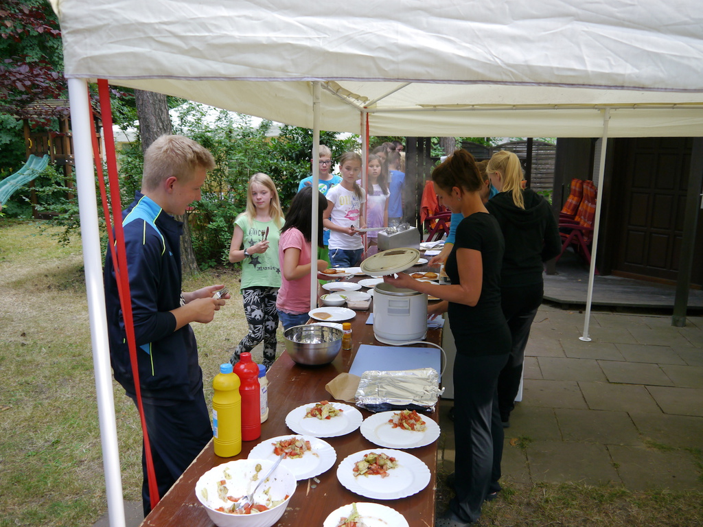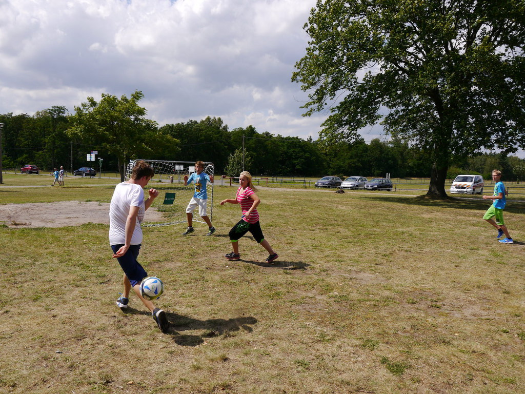 Zur Wochenmitte spielte Petrus leider etwas verrückt und bescherte den Kinder etwas wechselhaftes Wetter. Daher machten die Kinder am Mittwoch einen Ausflug in die Lutherstadt Wittenberg und begaben sich dort beim Besuch der Schlosskirche, an deren Tür der Reformator Martin Luther im Jahr 1517 seine 95 Thesen angeschlagen hatte, auf eine kleine Geschichtsreise. Im Anschluss besuchte unsere Ausflugsgruppe den Wittenberger Tierpark. Auf dem Weg dorthin fanden die Kinder ein Stadtbild vor, welches noch heute von den imposanten Bürgerhäusern der Renaissance geprägt ist. Im Tierpark konnten die Kinder u.a. lustigen Erdmännchen, Nasenbären und neun verschiedenen Affenarten in den Freigehegen beim Herumtollen zusehen. Im Streichelgehege konnten die Kinder dann einigen Tieren, wie Ziegen und Schafen ganz nah sein und diese streicheln sowie mit Futter aus dem Futterautomat füttern. Danach genossen die Kinder in Wittenberg noch etwas Stadtfreizeit, bei welcher sie in kleinen Gruppen durch die bummeln und shoppen gehen konnten. Zurück im Camp rundeten Tischtennis, Brettspiele, Boccia sowie das Spielen mit fern gesteuerten Autos den Tag schließlich ab.