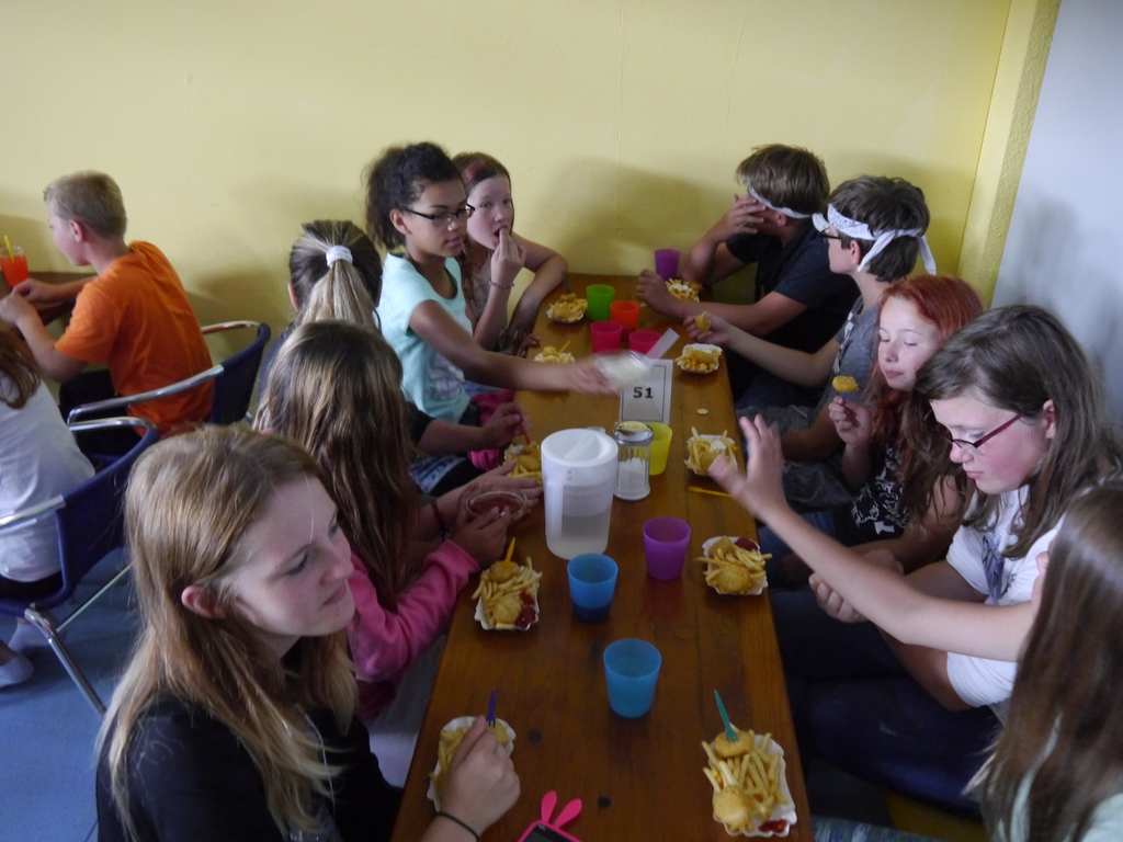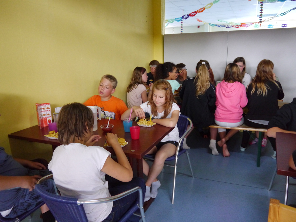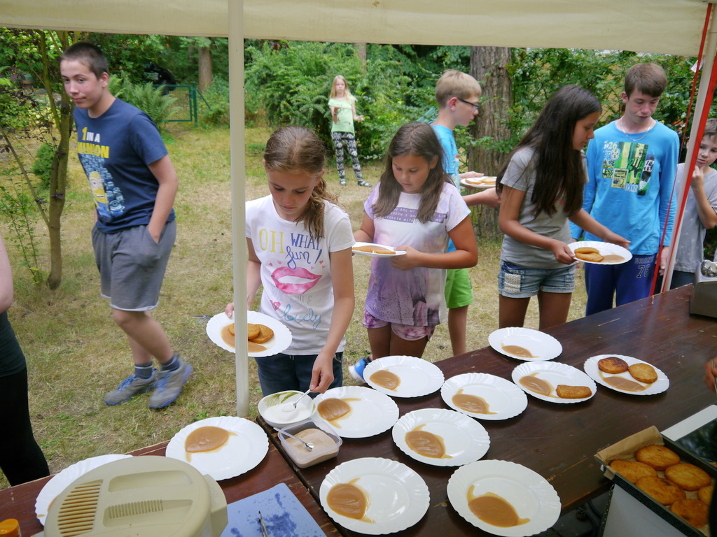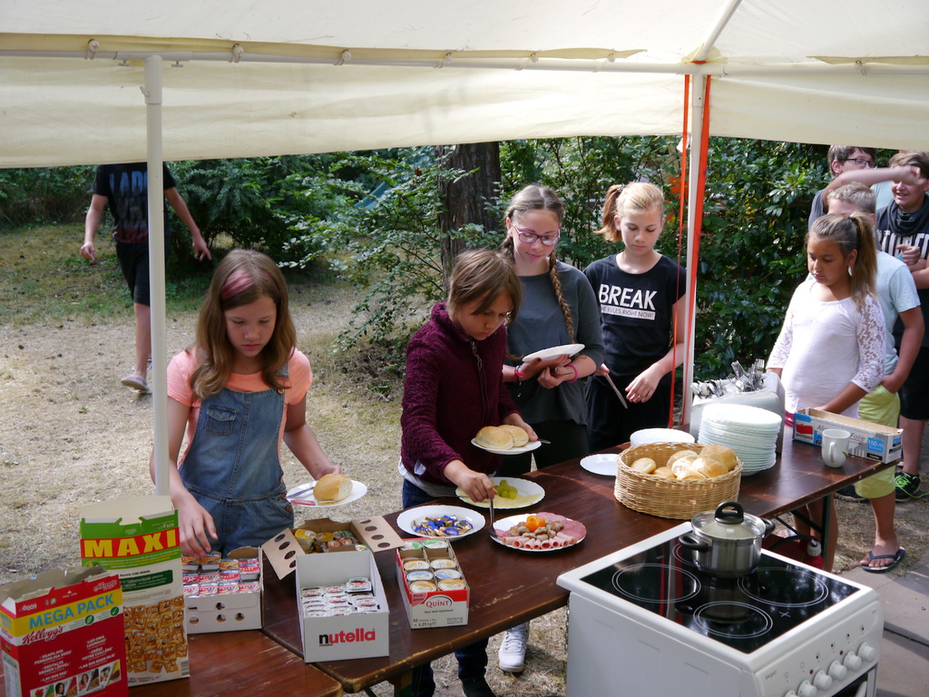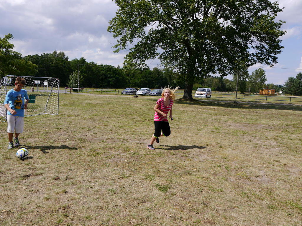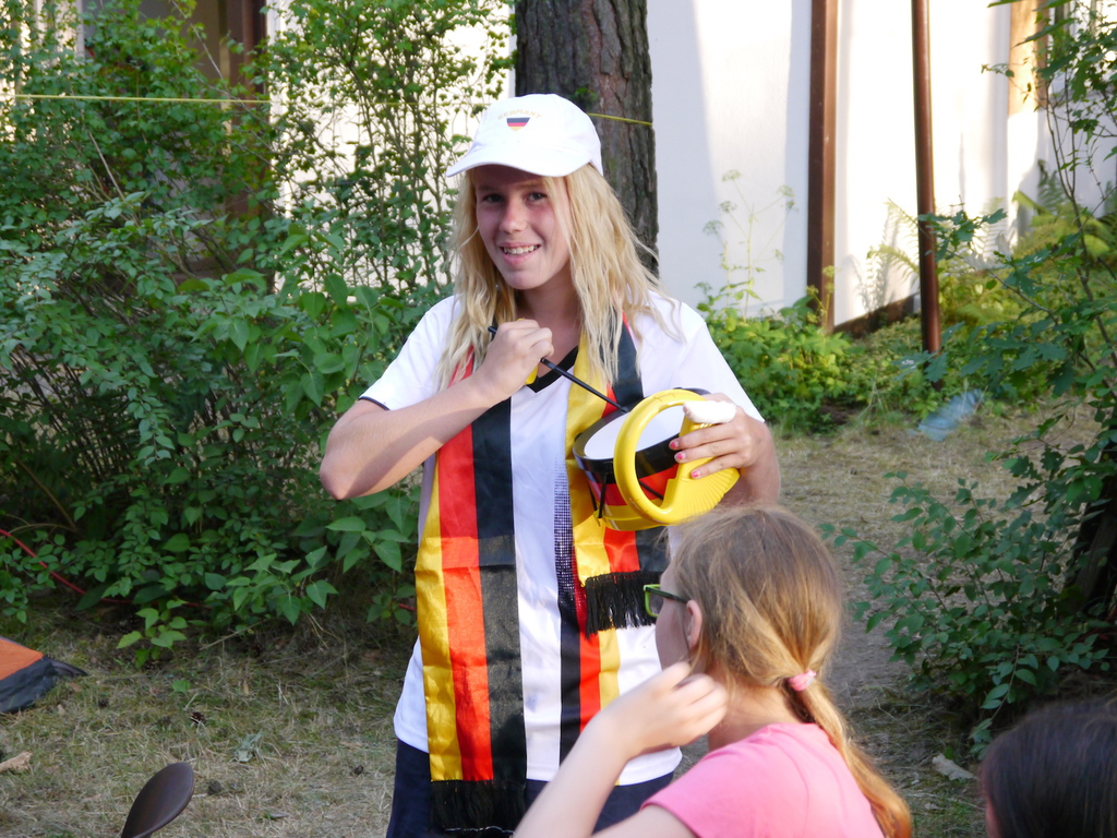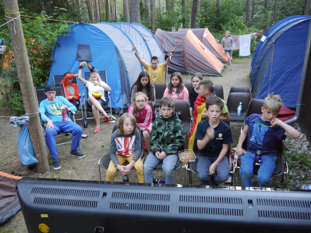 Am Donnerstag zog es die Kinder bei sommerlichen Tem-peraturen noch einmal ins „kühle Nass“ am Bergwitz-see, wo ein breiter Sandstrand zum spielen, baden und relaxen einlud. Der letzte Campabend stand aufgrund des EM-Halbfinales schließlich ganz im Zeichen des Fuß-balls. Wie sich das für einen ordentlichen Fußballabend gehört, teilten die Betreuer natürlich auch Chips und Süßes aus. Ausgestattet mit Fanartikeln in Schwarz-Rot-Gold fieberten die Kinder mit unserem DFB-Team im Spiel gegen Gastgeber Frankreich mit. Trotz kräftigen Daumendrücken flog unser DFB-Team leider nach einem 0:2 gegen Frankreich aus dem Turnier. Trotz der Deutschlandniederlage ließen sich unsere Kinder jedoch nicht ihren letzten Campabend versauen und ließen den Abend bei bester Laune gemeinsam ausklingen!