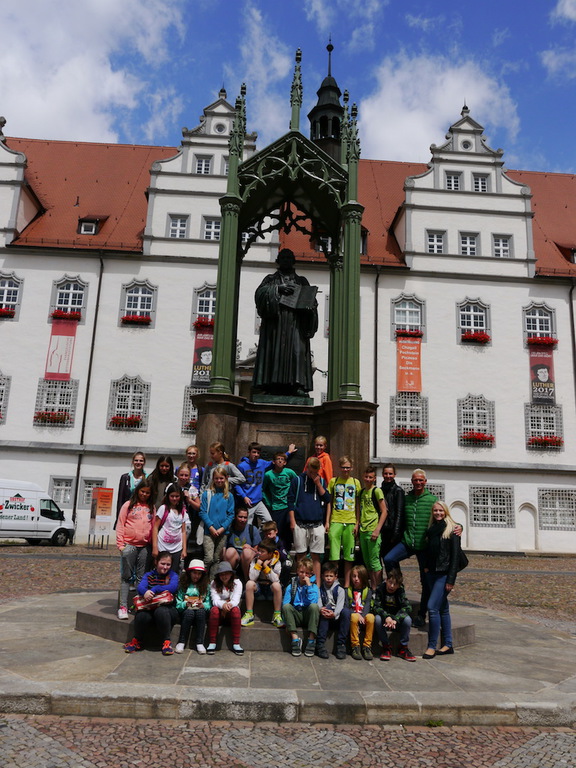Nach zwei ausgiebigen Badetagen am Bergwitzsee, besuchten die Kinder am Mittwoch die Kulturstadt Wittenberg. Auf den Spuren des großen Reformators Dr. Martin Luther bestaunten die Kinder die fast fertig restaurierte Schlosskirche, an deren Tür Martin Luther 1517 seine 95 Thesen angeschlagen hatte. Im Anschluss besuchten die Ferienkinder den unweit von der Schlosskirche entfernten Tierpark, wo die Kinder Erdmännchen, Affen, Papageien, Pfauen, Schildkröten und noch viele weitere kleine und große Tiere bestaunen konnten. Besonders viel Freude bereitete den Kindern der im Park integrierte Streichelzoo sowie das Beobachten der Äffchen, welche sich das ein oder andere spaßige Spielchen mit unseren Ferienkindern erlaubten. Bevor es am späten Nachmittag zurück ins Camp ging, genossen die Kinder in Wittenberg noch etwas Stadtfreizeit zum Shoppen und weiteren Erkunden von Wittenberg.
