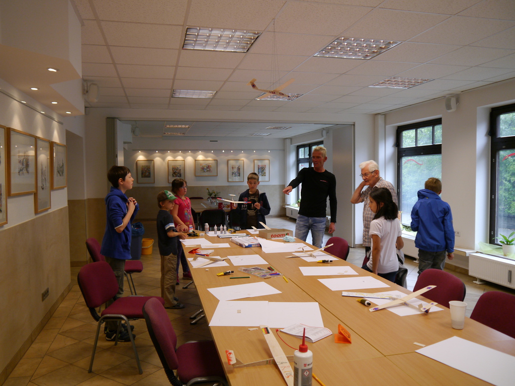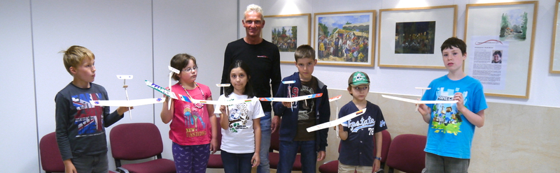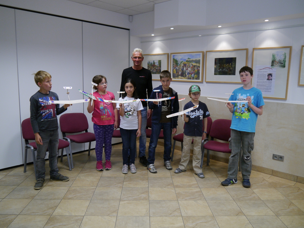 Mit freundlicher Unter-stützung durch die Mitarbeiter der WBG Kontakt bastelten die Ferienkinder in Grünau extrem leichte Flieger aus Balsaholz. Dazu wurden vorgefertigte Holzteile von den Kindern kreativ gestaltet und anschließend verleimt. Nachdem die Segelflieger erfolgreich zusammen gebaut waren, wurden diese auf der vor den Vereinsräumen gelegenen Ratzelwiese unmittelbar getestet, um eventuell noch kleine Schwachstellen in der Flugkurve zu beobachten und diese anschließend noch auszubessern!