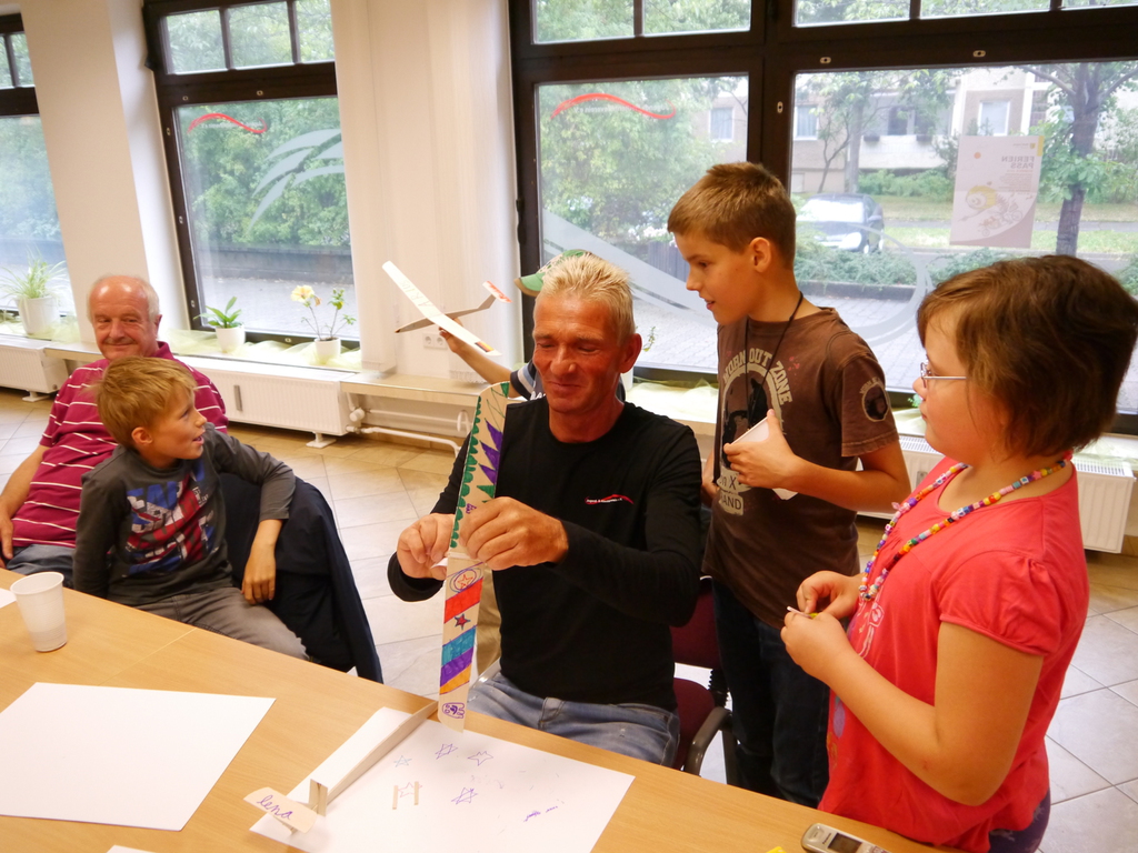 Aus vorgefertigten Balsaholz-Bauteilen bauten die Kinder in der letzten Ferienwoche ein Segelflugzeug. Mit der Hilfe durch die Mitarbeiter der WBG Kontakt gelang den Kindern das Zusammensetzen der Flieger im Handumdrehen. Durch das Bemalen der Tragflächen ließen die Kinder ihre Segelflieger zu Unikaten werden.