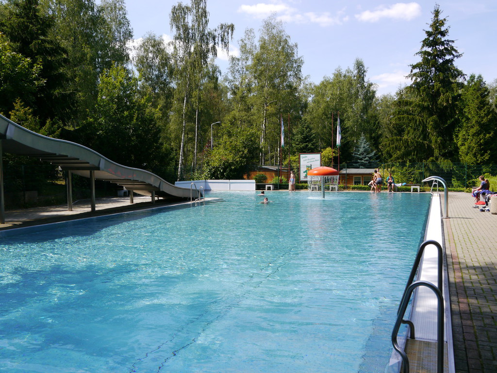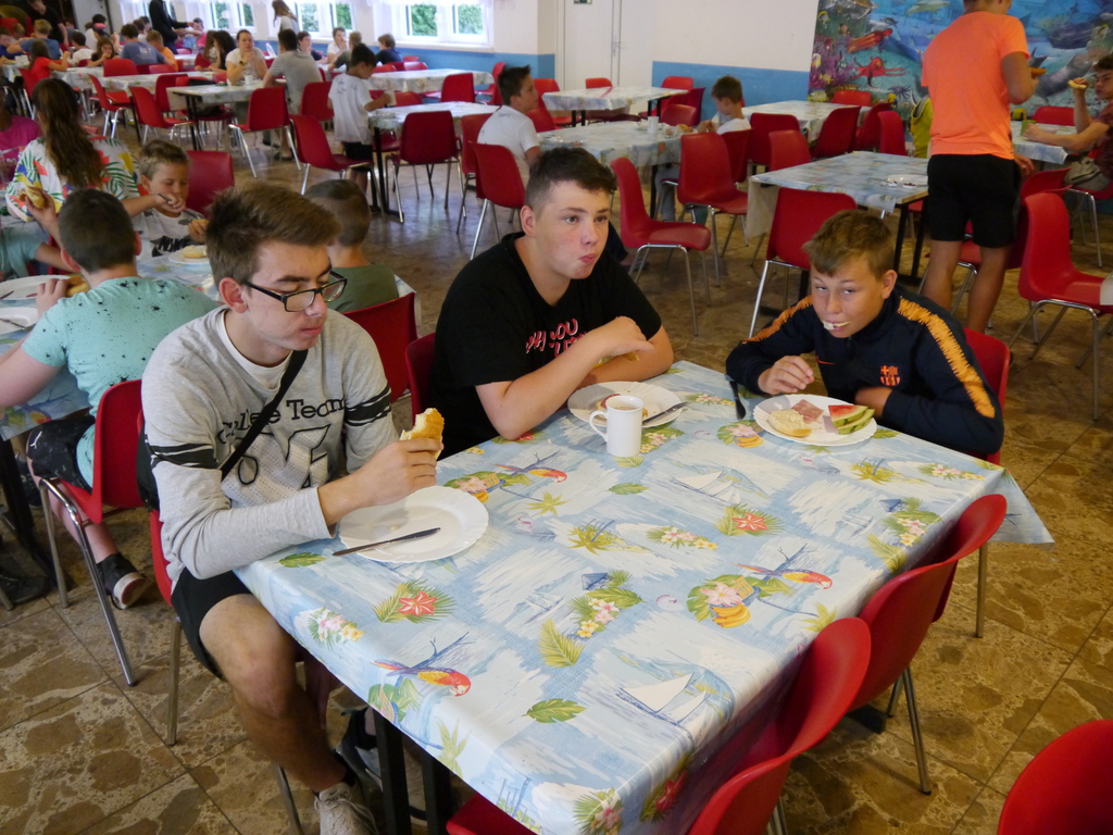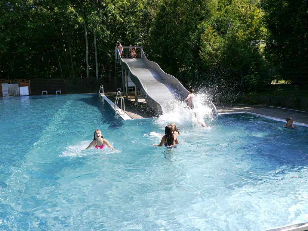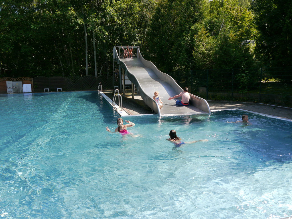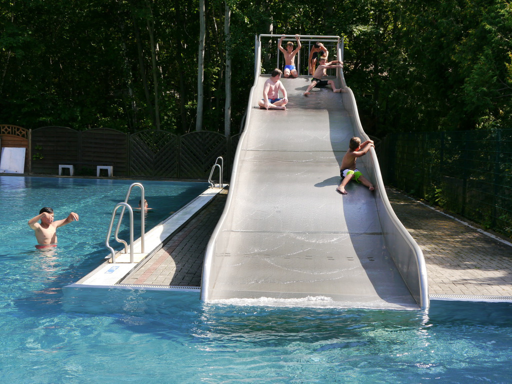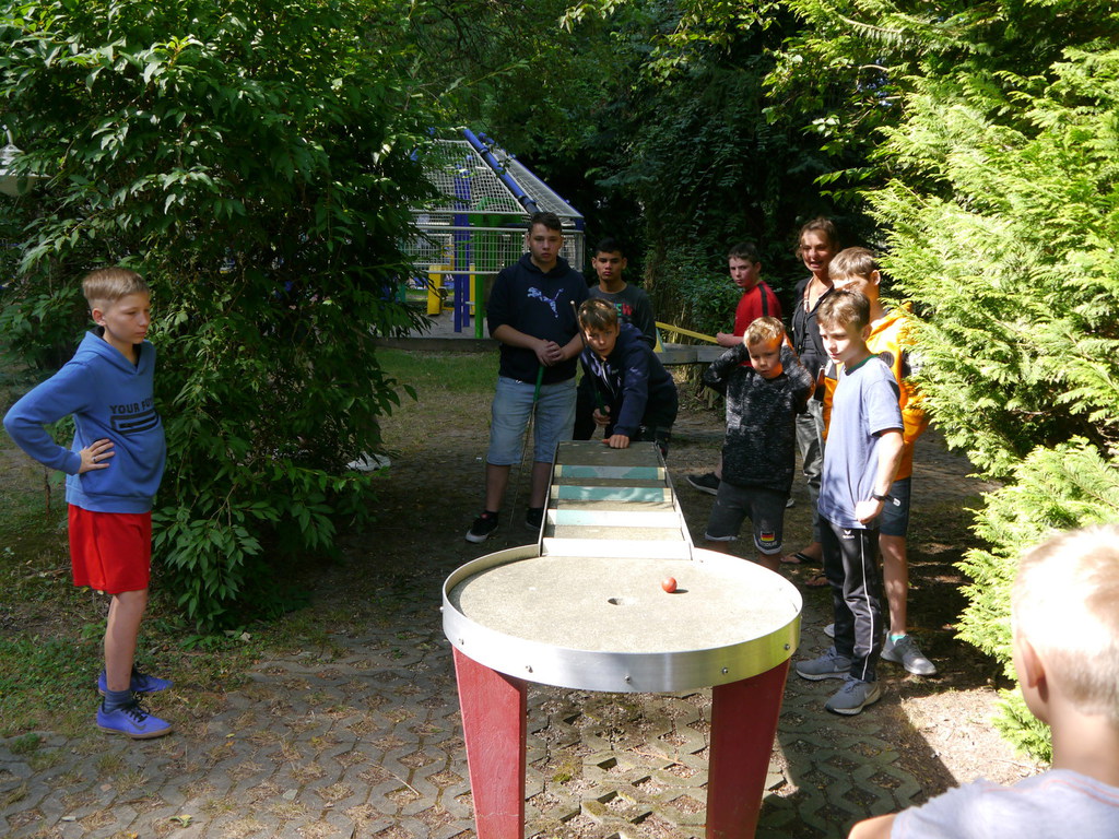Am Montagmorgen (03.08.) trafen wir uns alle in den Räumlichkeiten des Jugend- und Altenhilfevereins und verabschiedeten uns von den Eltern. Nach einer ca. einstündigen Busfahrt waren wir auch schon angekommen und erkundeten erstmal die Gegend. Inmitten eines Waldgebietes im landschaftlich schönen Vorerzgebirge bietet das Feriendorf neben komfortablen Unterkünften viele verschiedene Spiel- und Sportmöglichkeiten. Das haben wir direkt genutzt und am Nachmittag schon mal das Camp eigene Freibad unsicher gemacht.