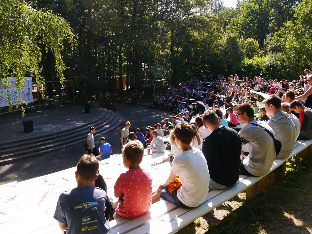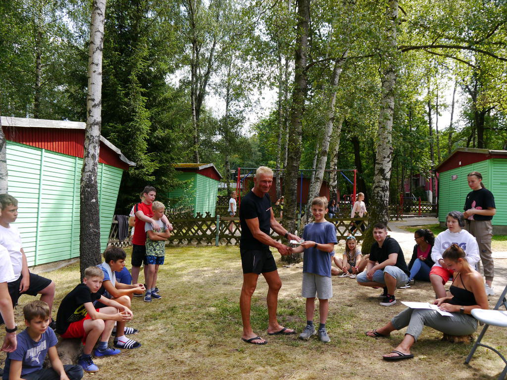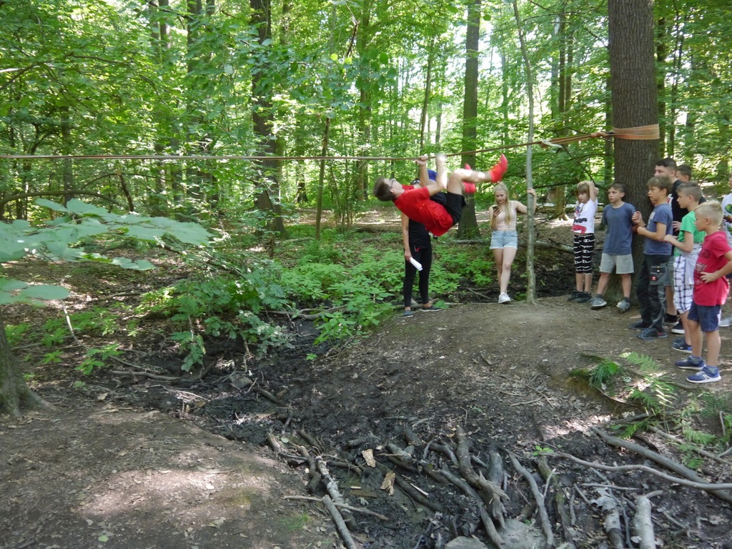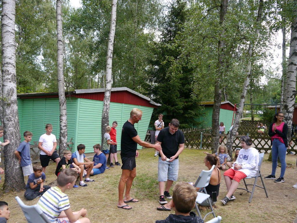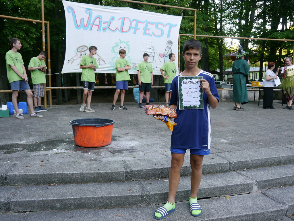 So erlebnisreich wie der vorherige Tag endete, begann auch der nächste, denn am frühen Morgen versammelten wir uns wieder auf der Freilichtbühne und eröffneten das sogenannte Waldfest. Dabei traten wir erneut gegen die anderen Gruppen an und absolvierten einen Waldlauf mit 12 Stationen. Hier waren sowohl Köpfchen als auch Muskeln gefragt. In der Gesamtwertung belegten die Kinder unseres Vereins mit ihrer Teamleistung den zweiten Platz.