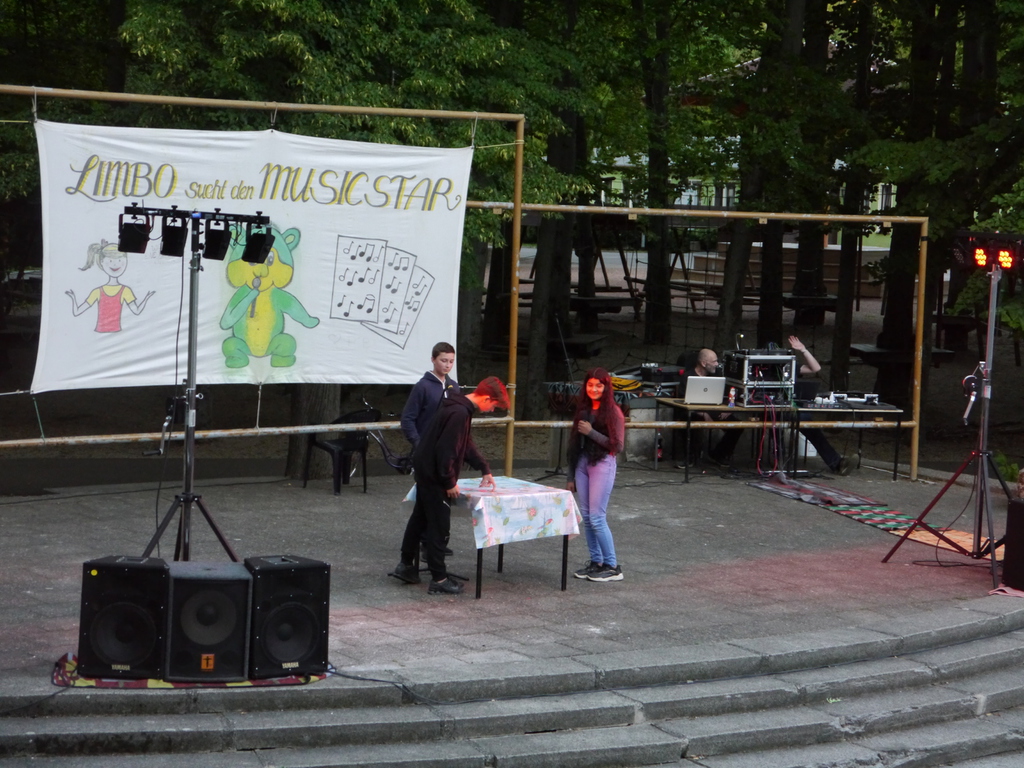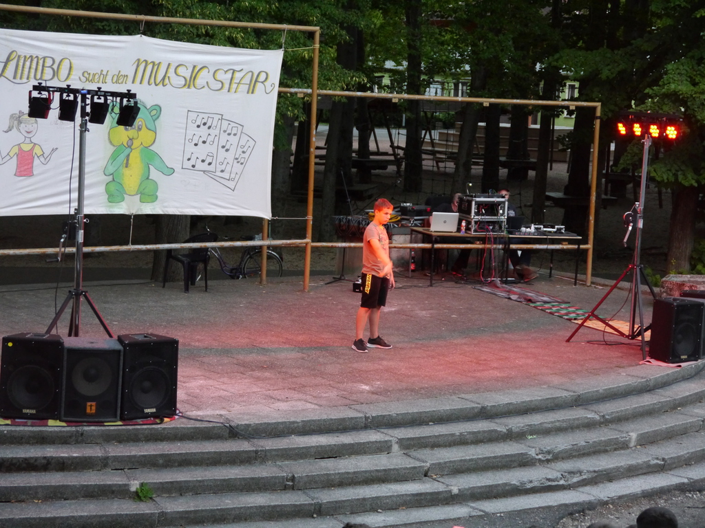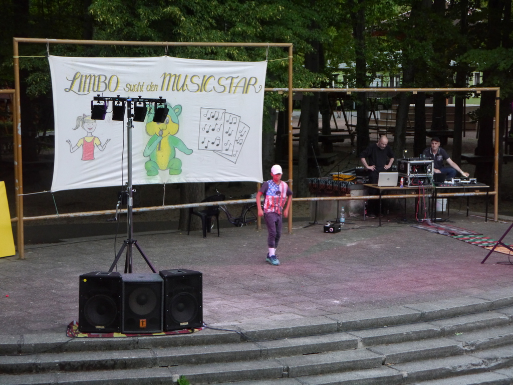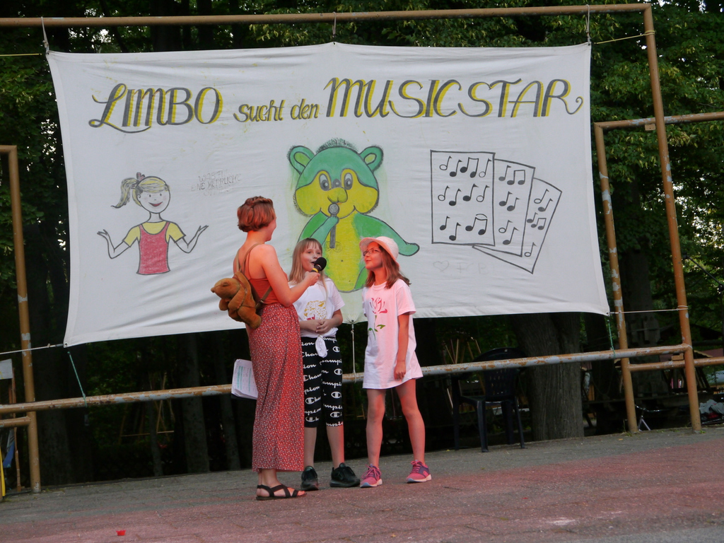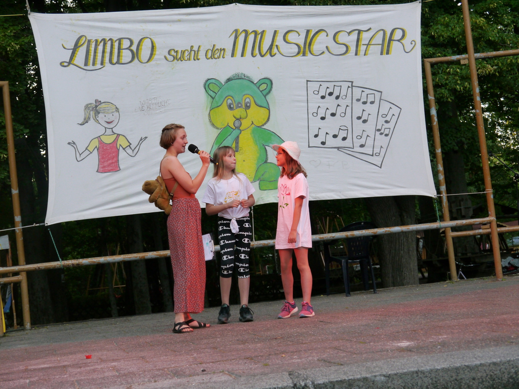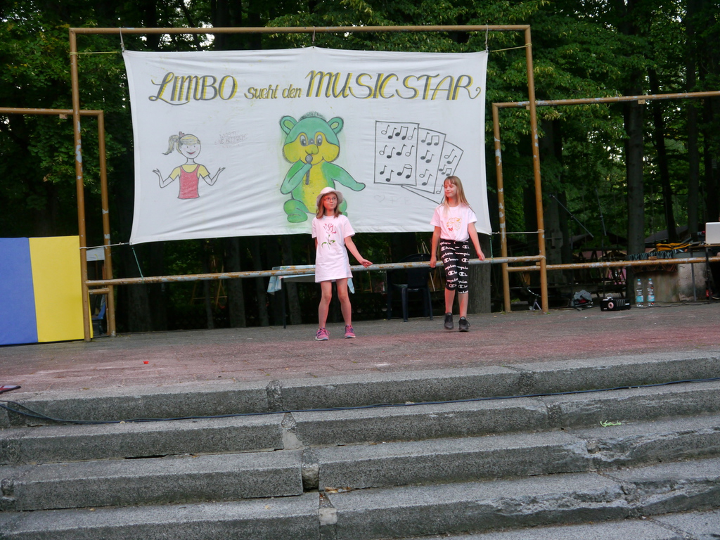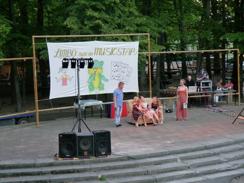 Ein ganz besonderes Highlight stand dann am Mittwoch an. Nachdem wir den Tag mit unterschiedlichen Freizeitaktivitäten auf dem Gelände verbracht und uns beim Trampolin springen und Baden ausgetobt hatten, fand am Abend eine Talente Show auf der Freilichtbühne statt. Dabei standen die Kids im Mittelpunkt und bereicherten mit ihren Auftritten die Show "LIMBO sucht den Musicstar". Auch seitens des Jugend- und Altenhilfevereins gab es eine mutige Teilnehmerin, die mit einer Tanzvorführung für ordentlich Stimmung sorgte. Im Anschluss wurde dann noch ausgelassen bei der Kinder-Disco getanzt.