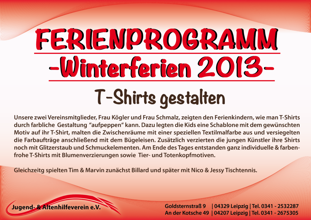 Unsere Ferienangebote in den Winterferien 2013