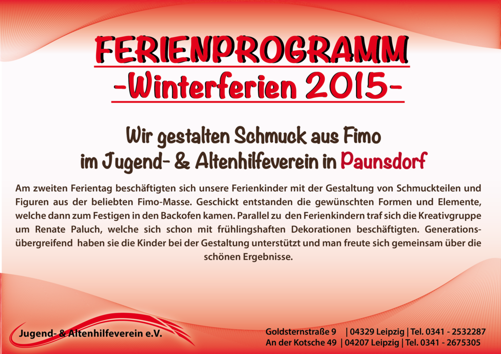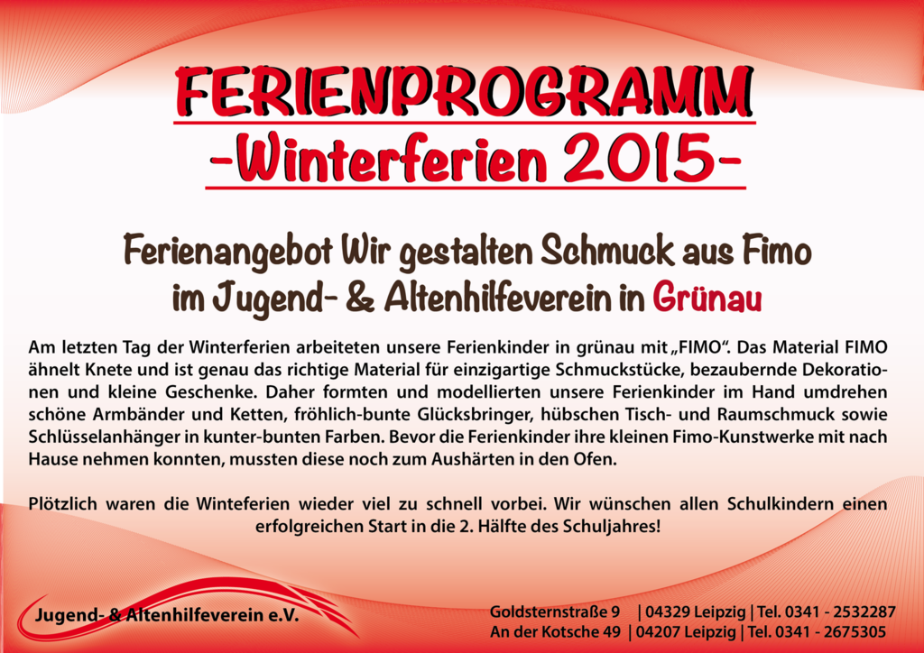Winterferienangebot im Jugend- & Altenhilfeverein in Grünau: Wir gestalten Schmuck aus Fimo