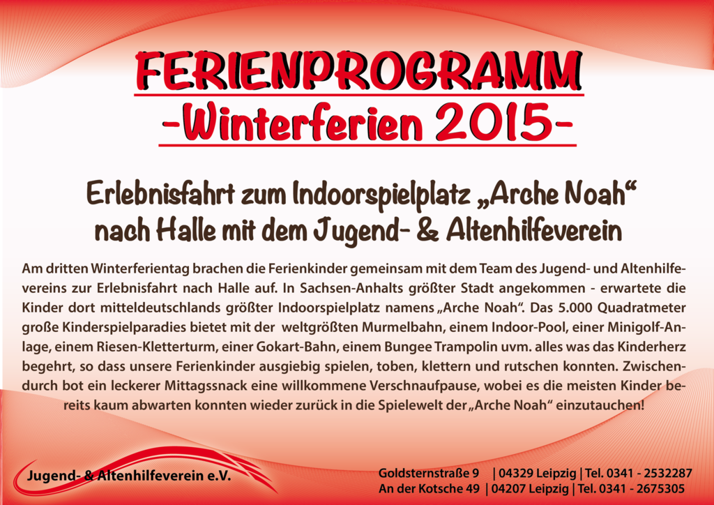 Winterferienangebot: Erlebnisfahrt zum Indoorspielplatz Arche Noah nach Halle (11.02.2015)