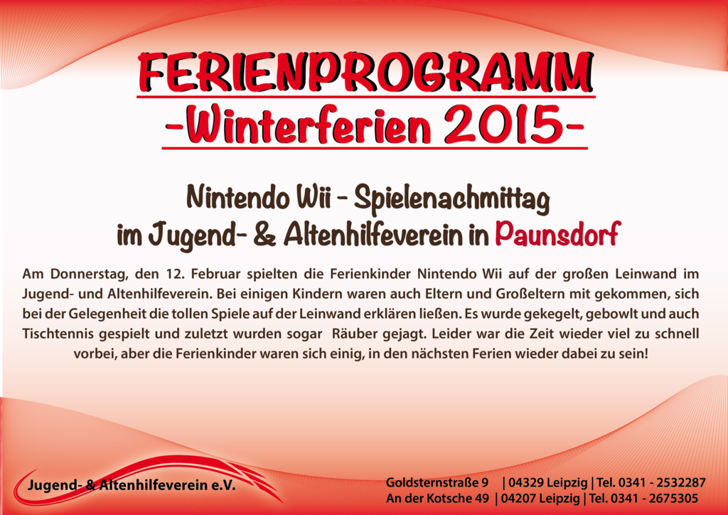 Winterferienangebot: Nintendo Wii Spielenachmittag (12.02.2015)