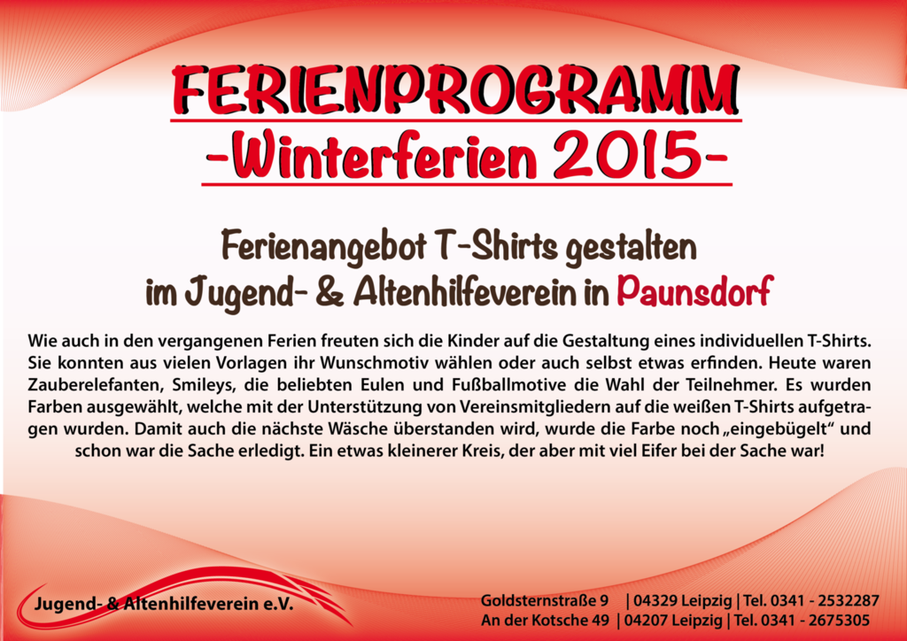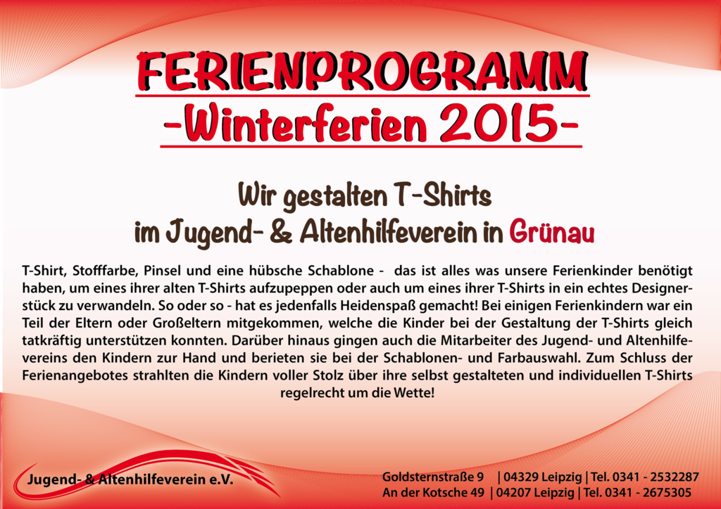 Winterferienangebot: Wir gestalten T-Shirts (17.02.2015)