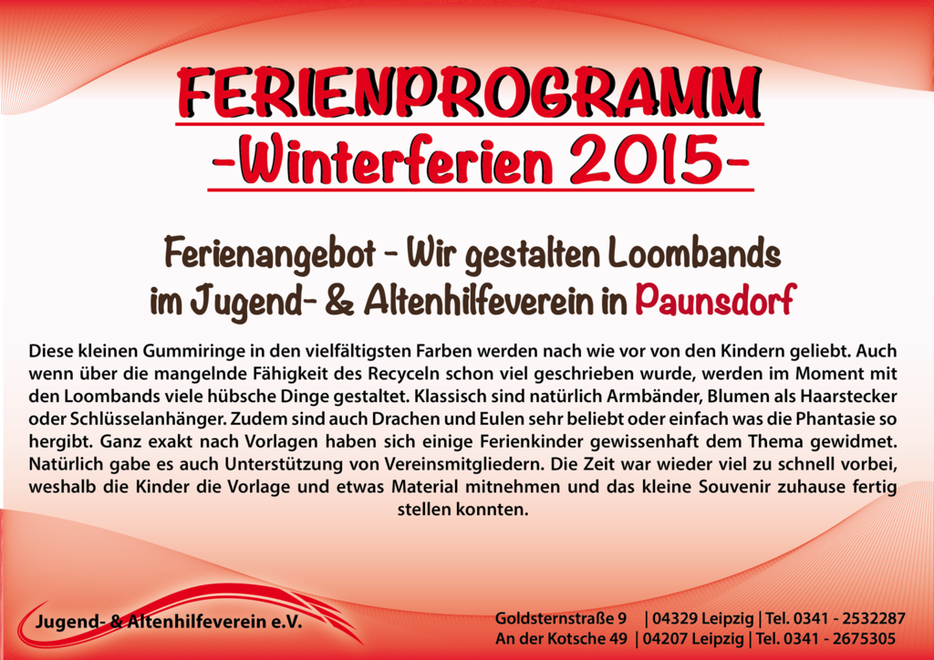 Winterferienangebot: Wir gestalten Loombands (19.02.2015)