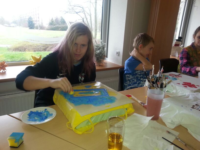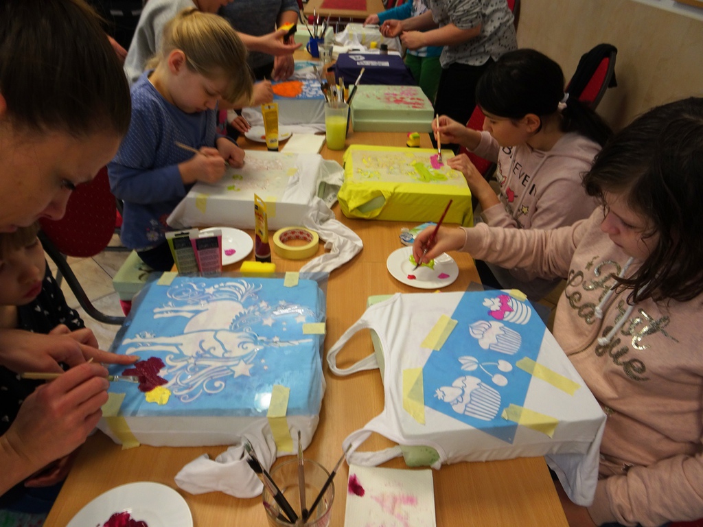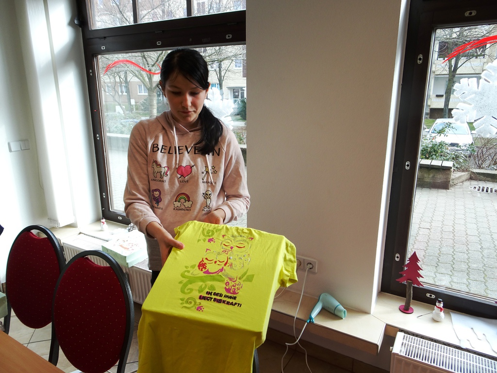 Dass man nicht für alle schönen Sachen Geld ausgeben muss, vermittelte die Veranstaltung „T-Shirts selbst gestalten“ am 20.02.18 in Paunsdorf. Alles was für die schönen Ergebnisse benötigt wurde, waren ein weißes T-Shirt, alte Klamotten und Kreativität, um den Rest kümmerten sich die WBG Kontakt und der Jugend-& Altenhilfeverein. Trotz der vielen Teilnehmer sah jedes T-Shirt individuell aus. Die Herstellung ihrer ganz eigenen Kleidungsstücke sorgte für viel Vergnügen bei den Kindern.