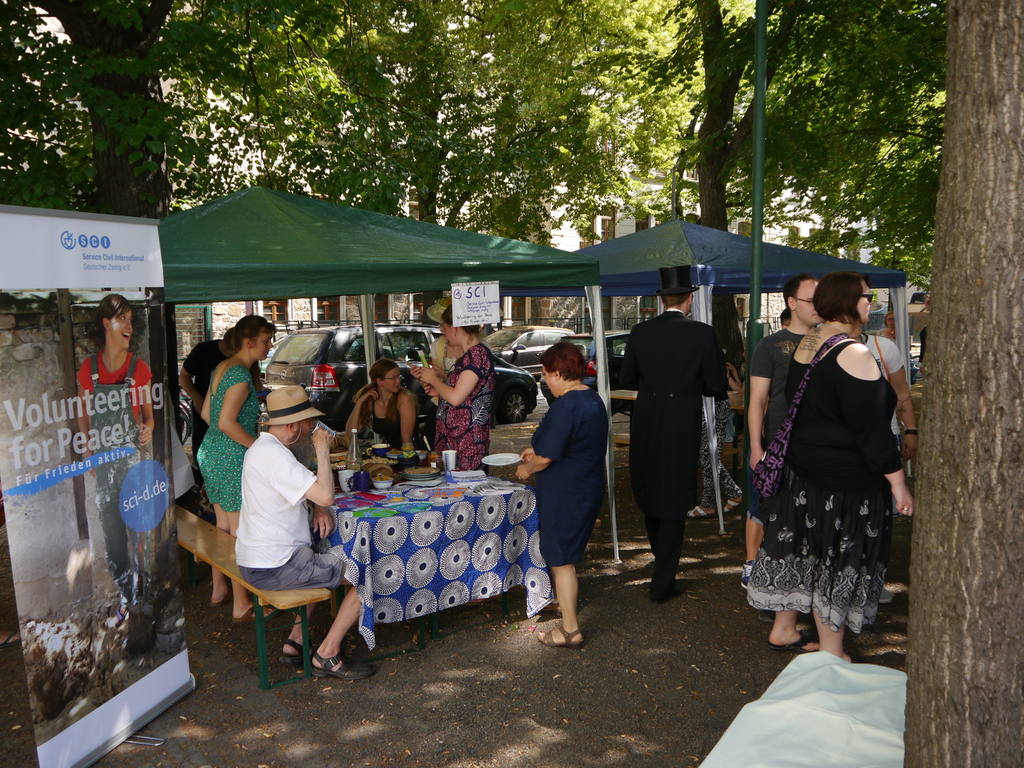 Bunte Frühstückstafeln zum 10. Neustädter Frühstück (05.07.2015)