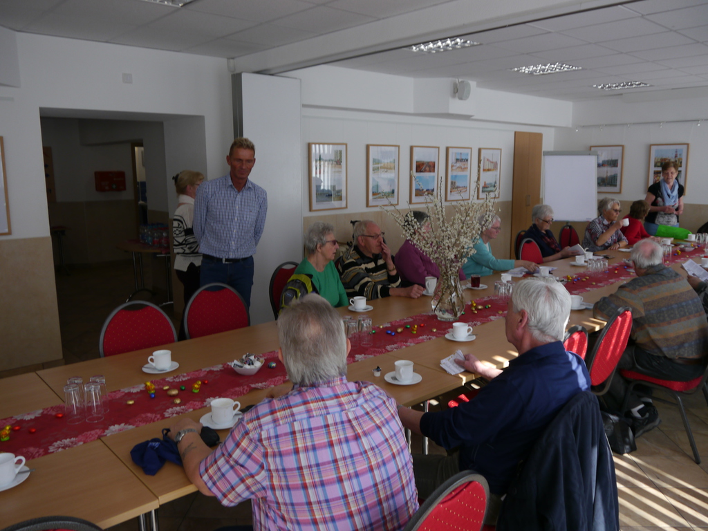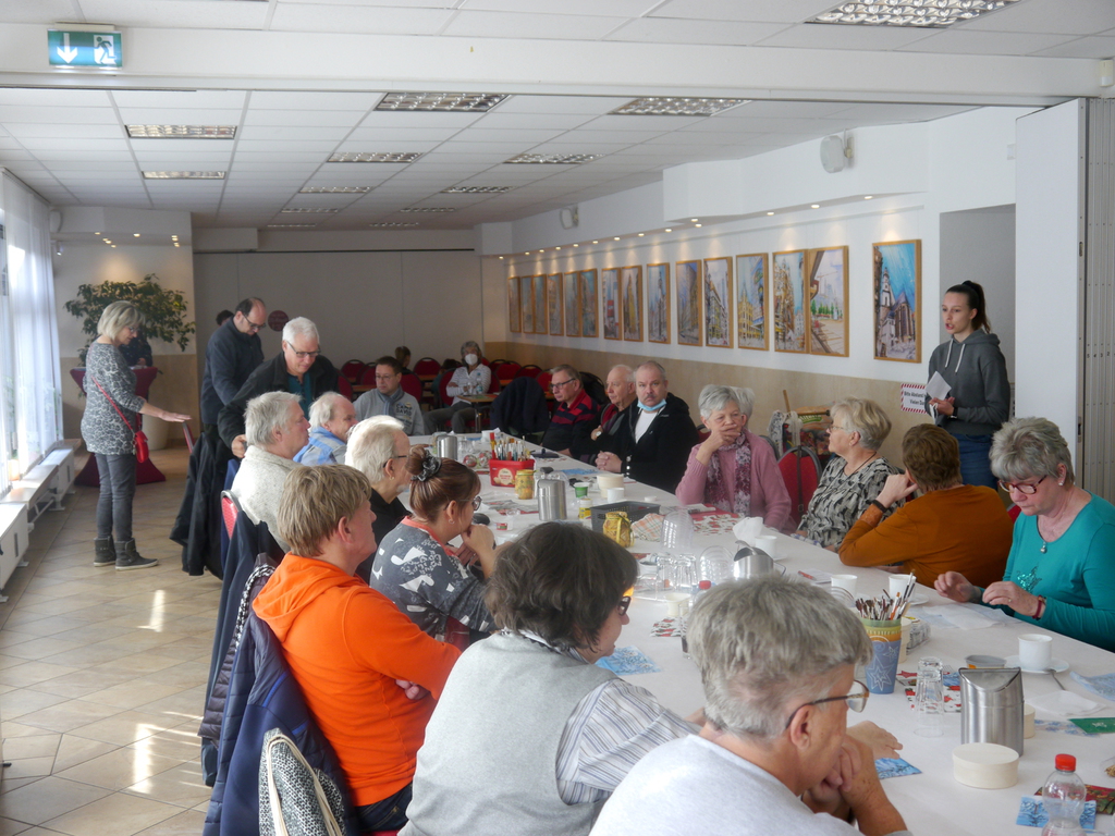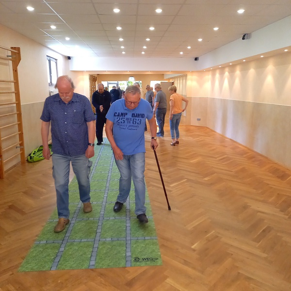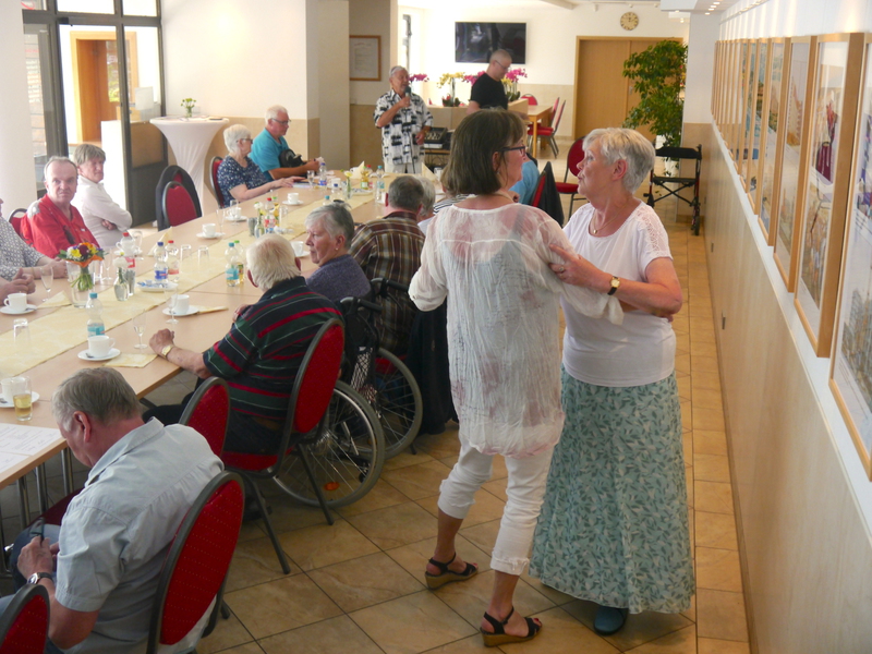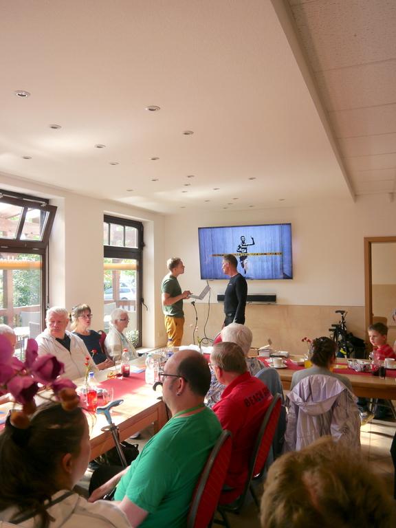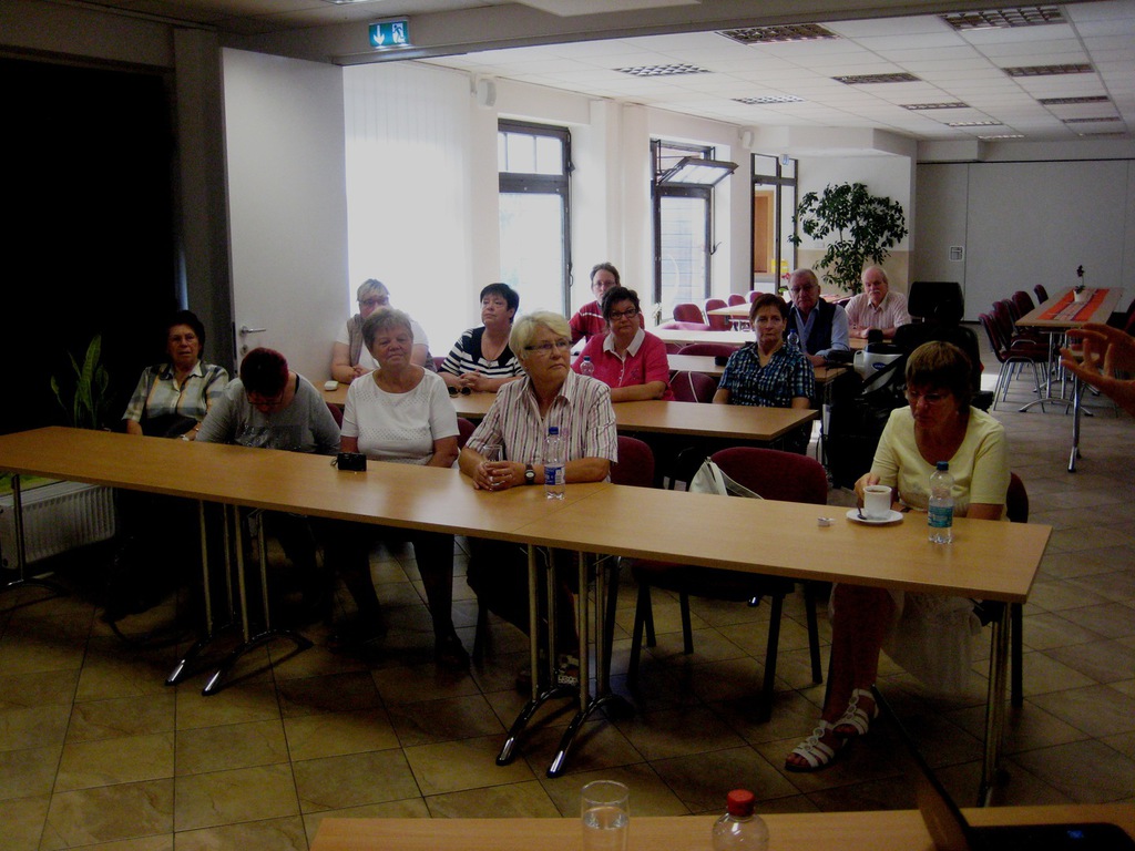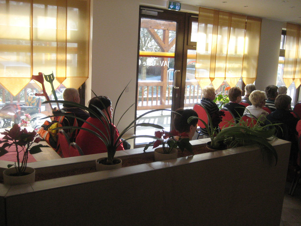 In zwei Gruppen wurden Bewegungsübungen im Sitzen und Stehen praktiziert – das hat allen, trotz großer Anstrengung, viel Freude bereitet. Eine Logopädie stellte dazu noch ein neues Gruppenangebot vor, das von den gesetzlichen Krankenkassen finanziell unterstützt wird.